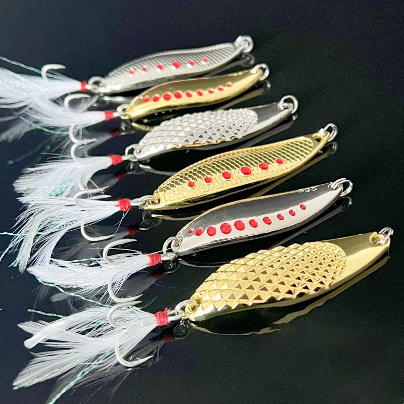 Señuelos duros de Metal para pesca, anzuelo de plumas, aparejos de pesca, 3g, 5g, 7g, 10g, 15g, 20g, 25g, 2 piezas