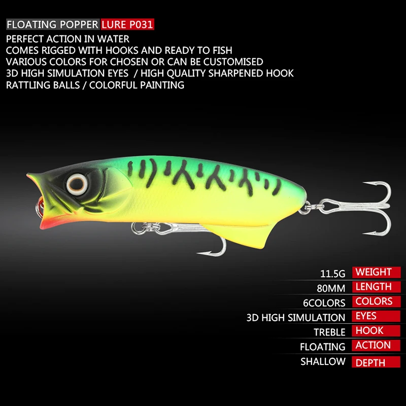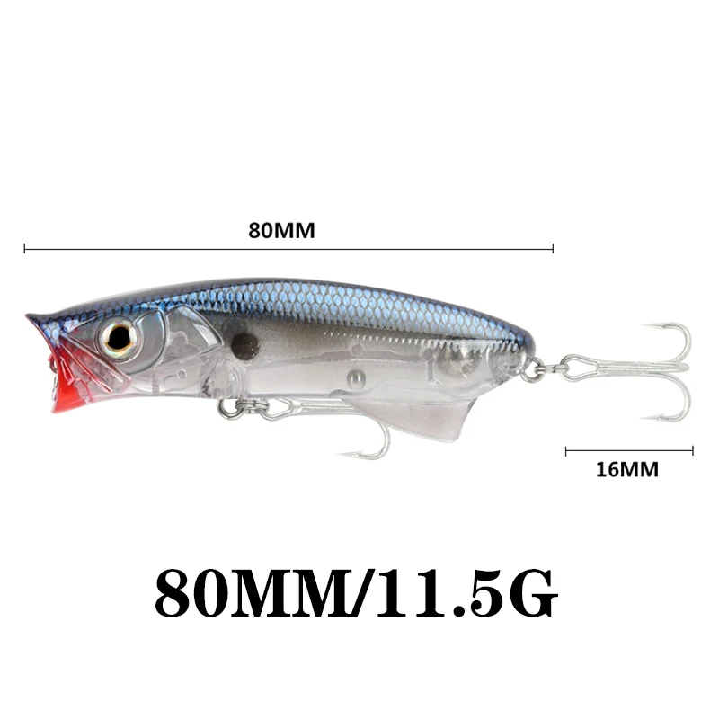 1Pcs Popper señuelos duros de pesca 80mm 11,5g Topwater Floating Wobblers Bass Baits Artificial Isca Pike Lure Crankbaits Tackle
