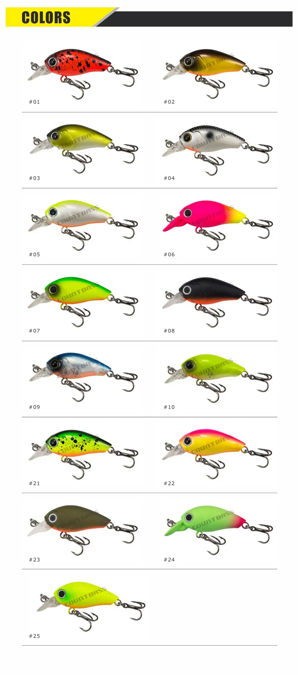 Señuelos duros de plástico de 36mm, 1-3/8 ", 4,3g, 1/8 oz. Crankbaits de hundimiento, cebos de pesca, Crankbait, Wobblers, Plug, señuelo de pescado de agua dulce