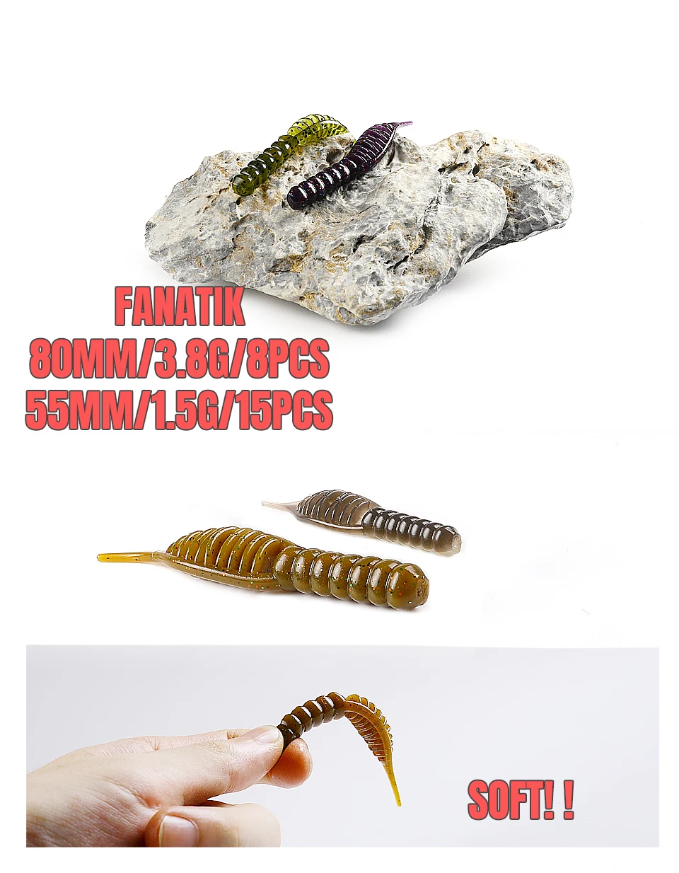 Señuelos fanatik supercontinentes, 80mm/8 Uds., 55mm/15 Uds., Señuelos de Pesca blandos, cebos de silicona suave, cebo suave de Larva