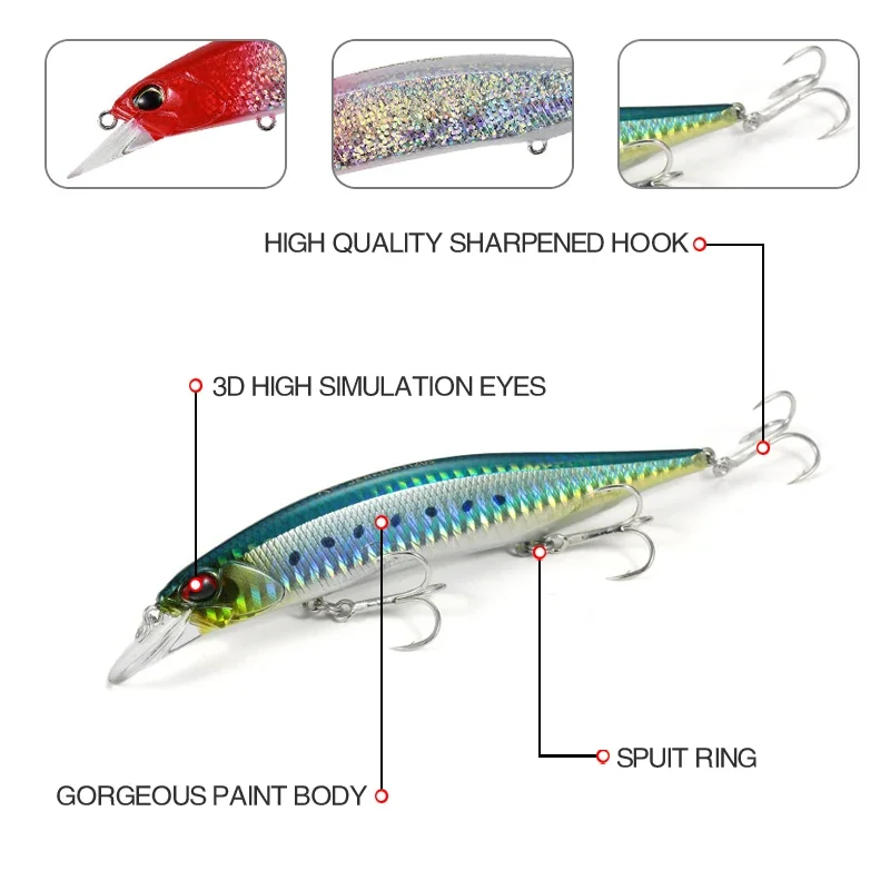 Señuelos flotantes para pececillos, 120mm, 17g, cebo Artificial, trucha, lubina, accesorios de Pesca de carpa, Wobblers de Pesca con cuello, Pesca Isca M084