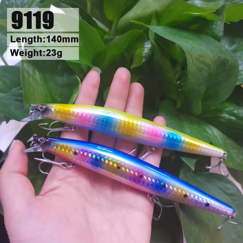 Señuelos flotantes para Pesca, cebo artificial de fundición larga, 140F, 145mm, 23g, Lucio, trucha, Jerkbait, Isca, 9119