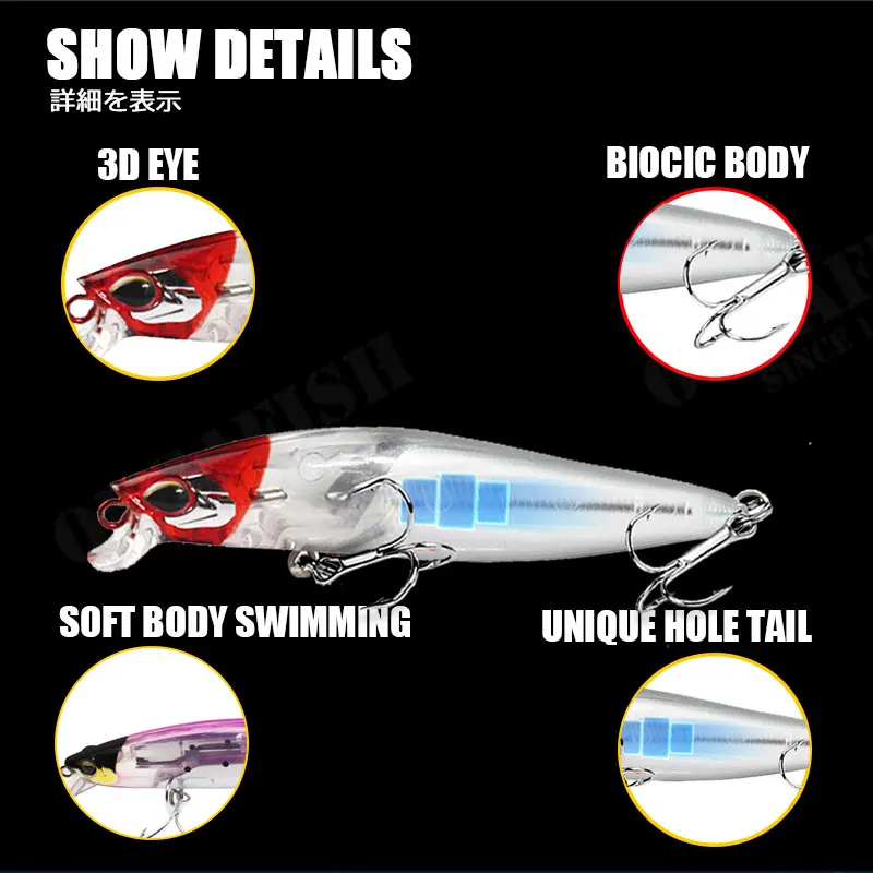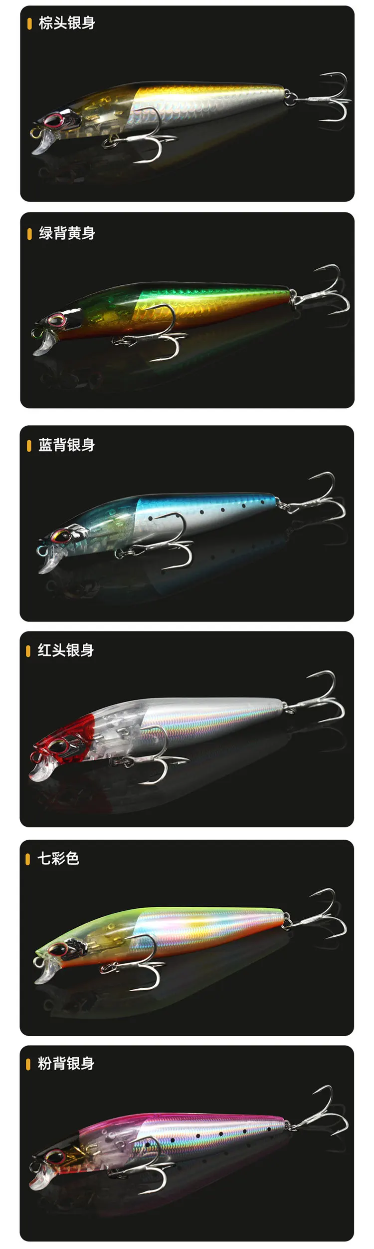 6. Bolas de metal: Bolas de acero inoxidable en el interior, para mantener el equilibrio del señuelo de pesca, para la mayor distancia de lanzamiento.