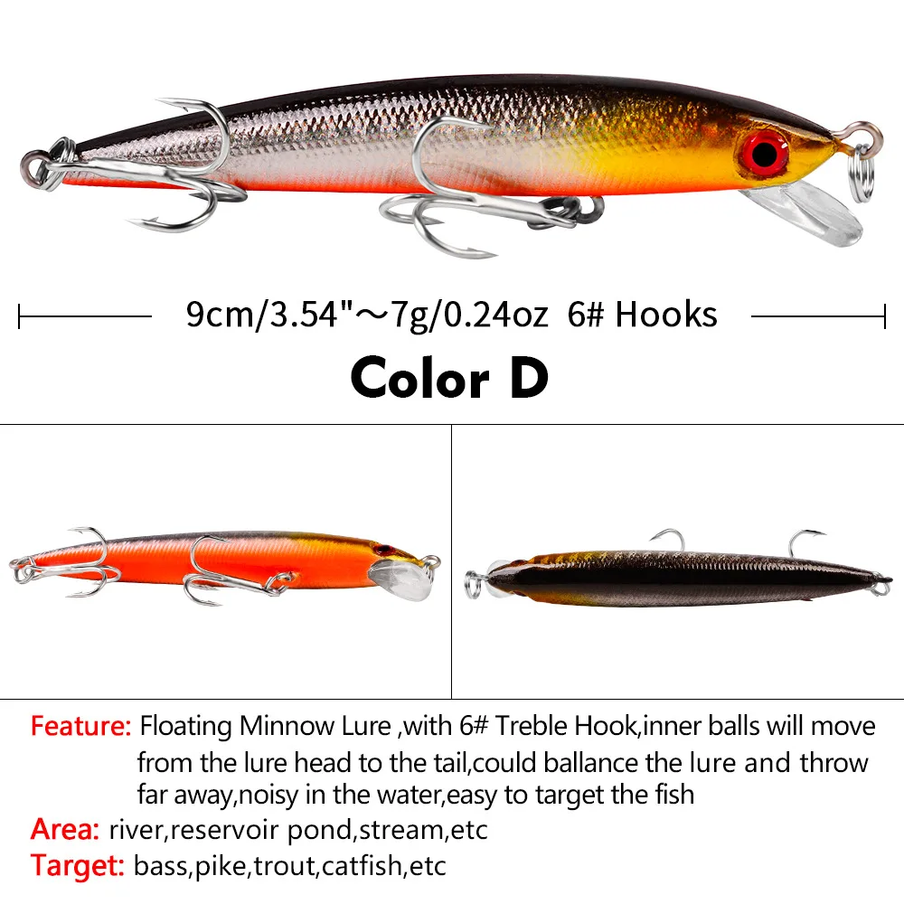 Señuelos flotantes para pesca de pececillos, cebos artificiales de plástico duro, 9cm, 7g, ojos 3D, Crankbait, Japón, Lucio, trucha, 1 pieza