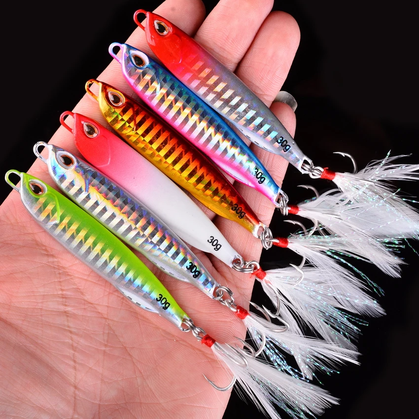 Señuelos de fundición de Metal para pesca en el mar, cebo Artificial de 10G, 15G, 20G, 30G, 40G, cuchara de fundición larga para Jigging, 6 unidades