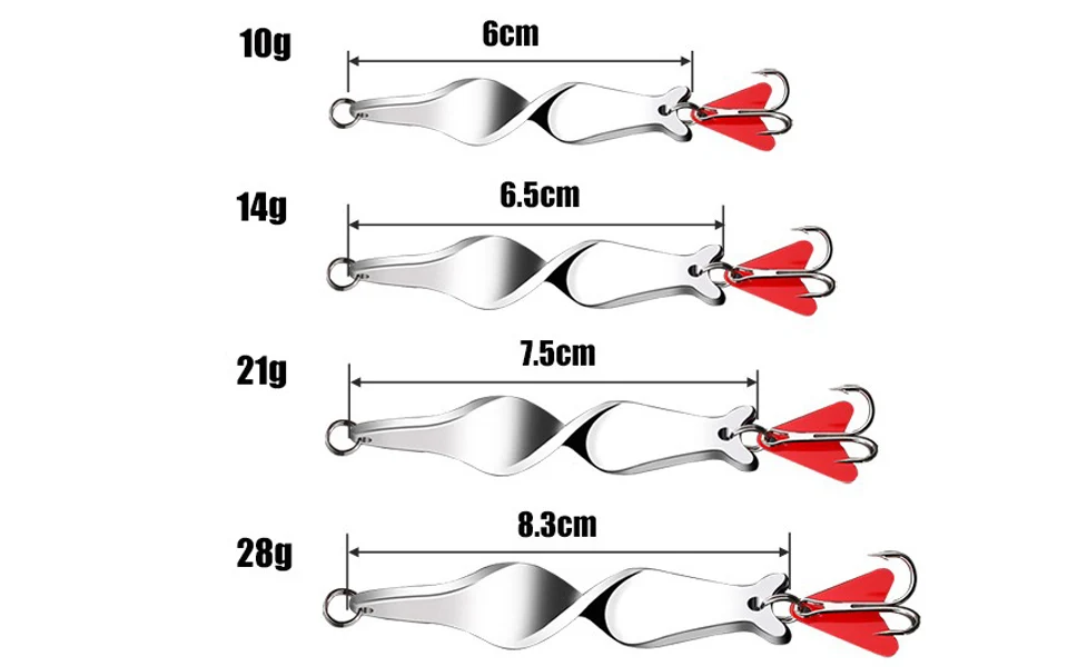 Señuelos giratorios de metal, 1 cuchara de piezas, 10g, 14g, 21g y 28g