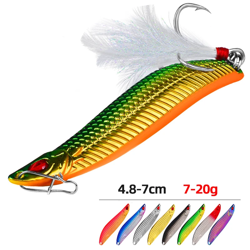 Señuelos giratorios de Metal para Pesca, 1 cuchara giratoria de piezas, 7g, 10g, 15g, 20g, anzuelo triple de pluma de haya, cebo Artificial para lubina, trucha, aparejos de Pesca