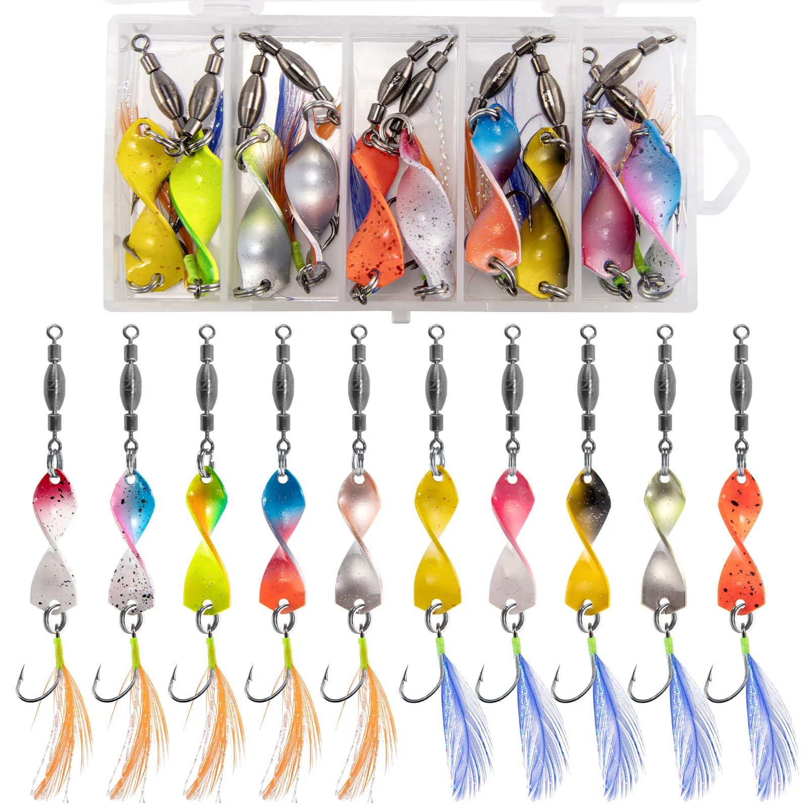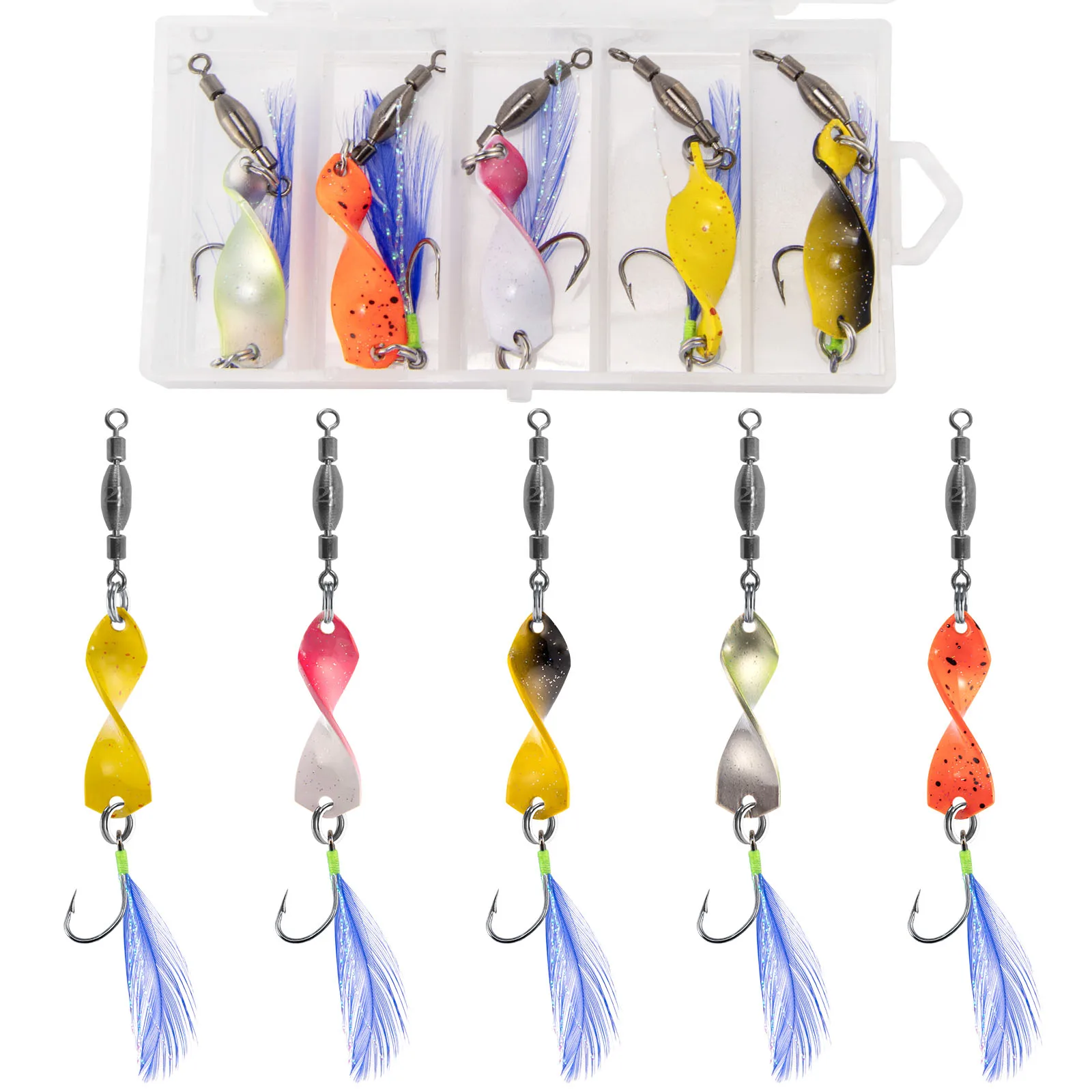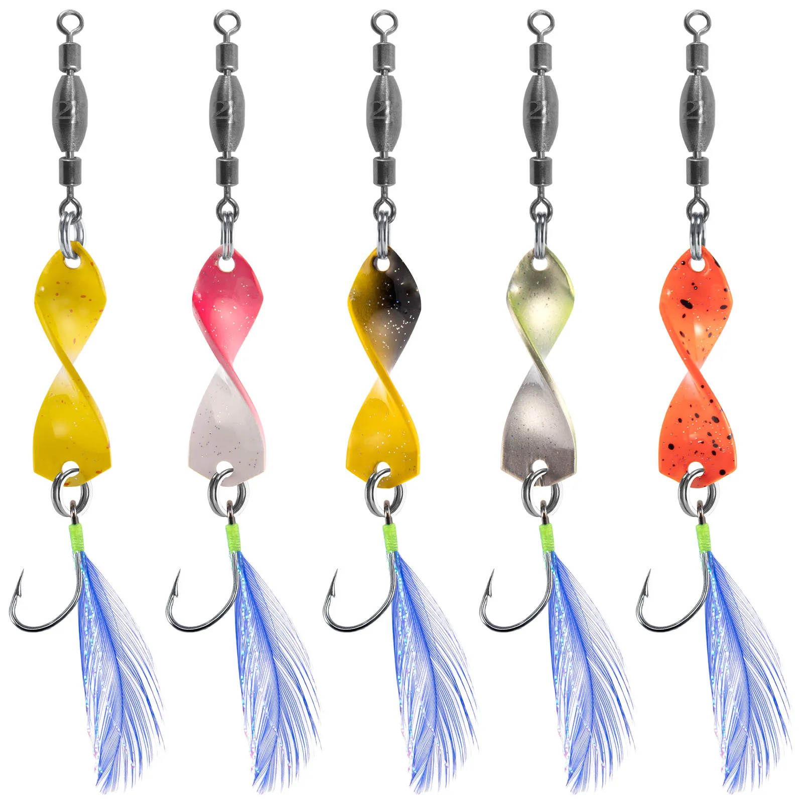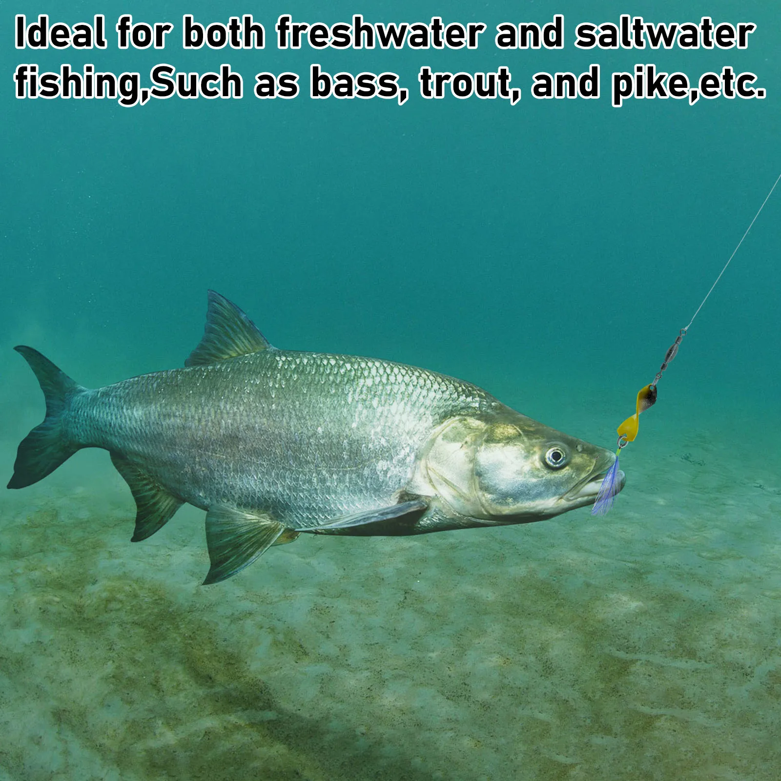 Rotación de 360 °: El eslabón giratorio de latón permite que las cuchillas retorcidas giren 360 ° en el agua, creando un movimiento de balanceo y deriva que genera salpicaduras y reflejos, mejorando la tasa de captura de peces.