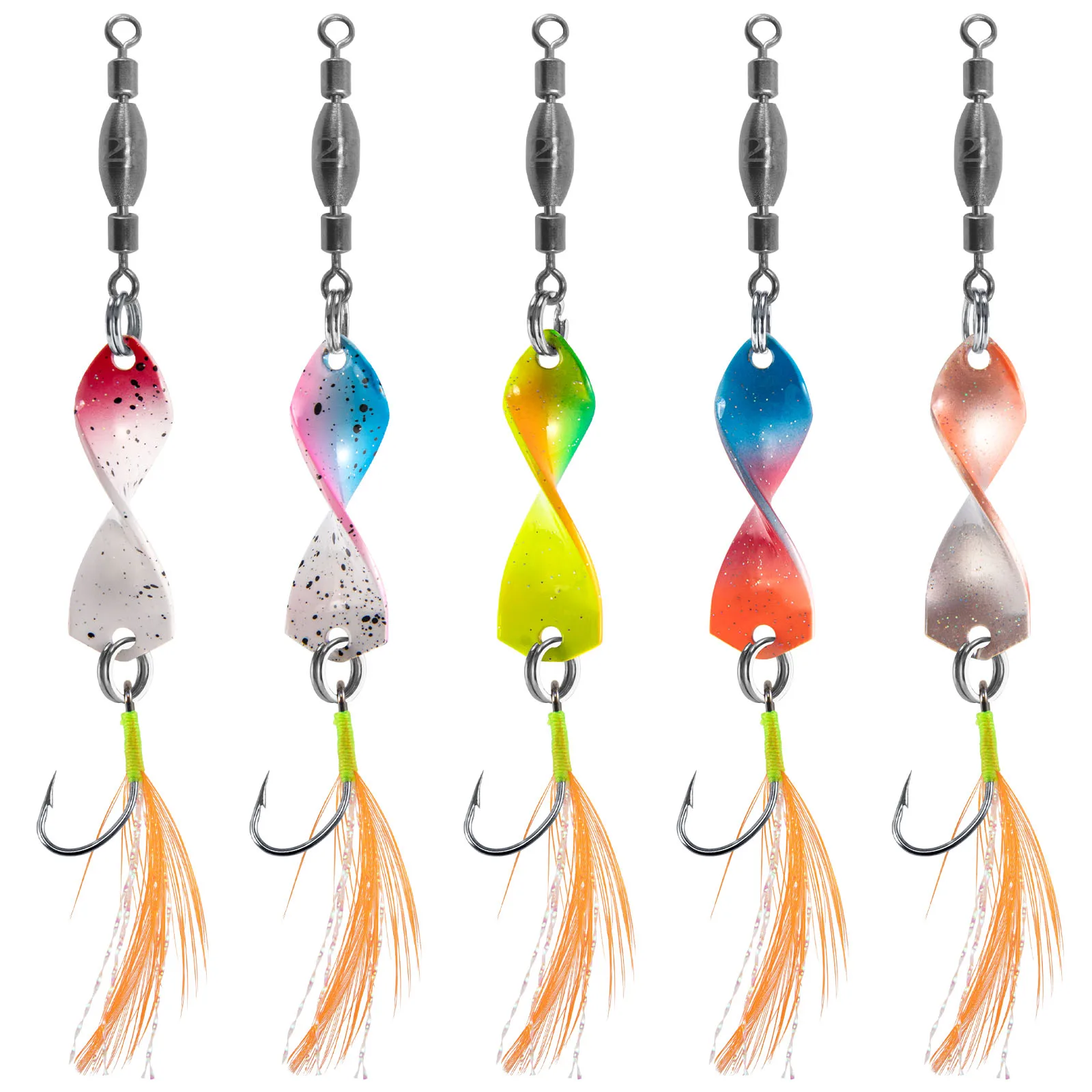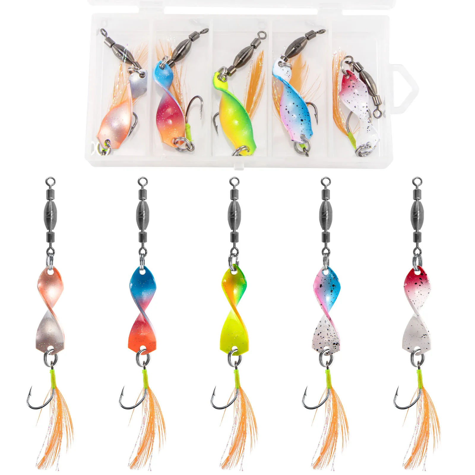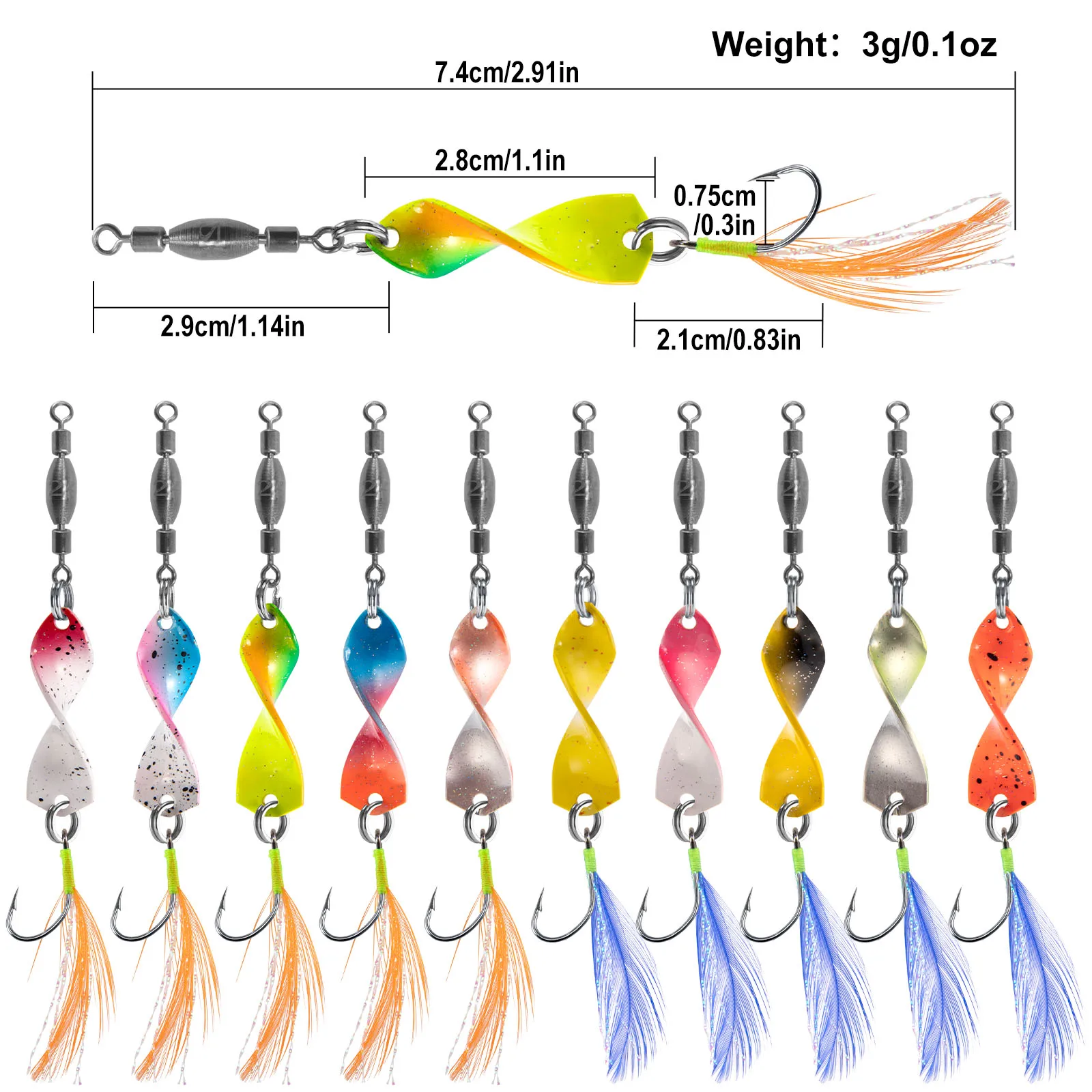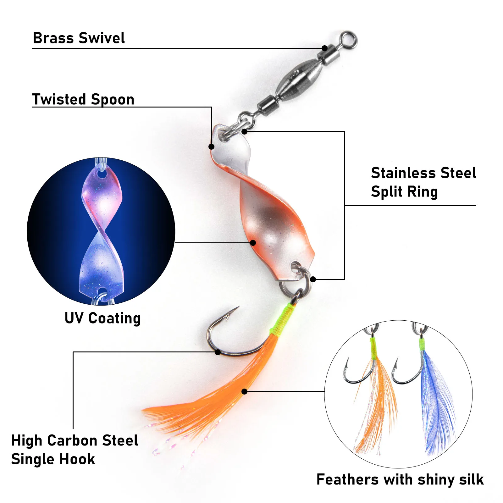 Anzuelo único emplumado: el señuelo cuenta con un anzuelo único emplumado de primera calidad que aumenta la visibilidad y el atractivo, lo que lo hace irresistible para los peces de caza y mejora sus posibilidades de captura.