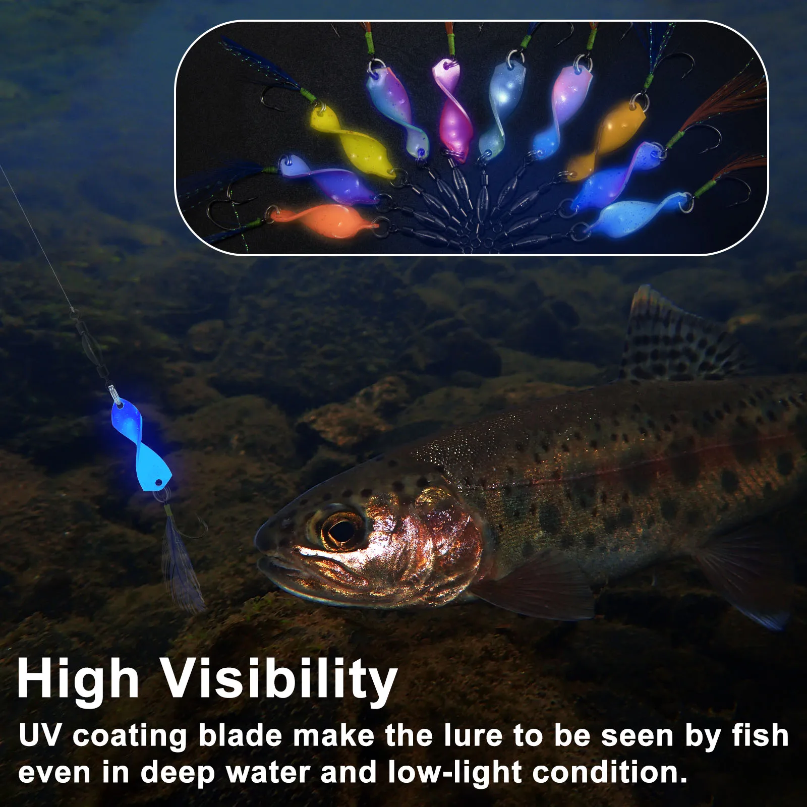 Alta visibilidad: La hoja de revestimiento UV permite que el señuelo sea visto por los peces incluso en aguas profundas y condiciones de poca luz.