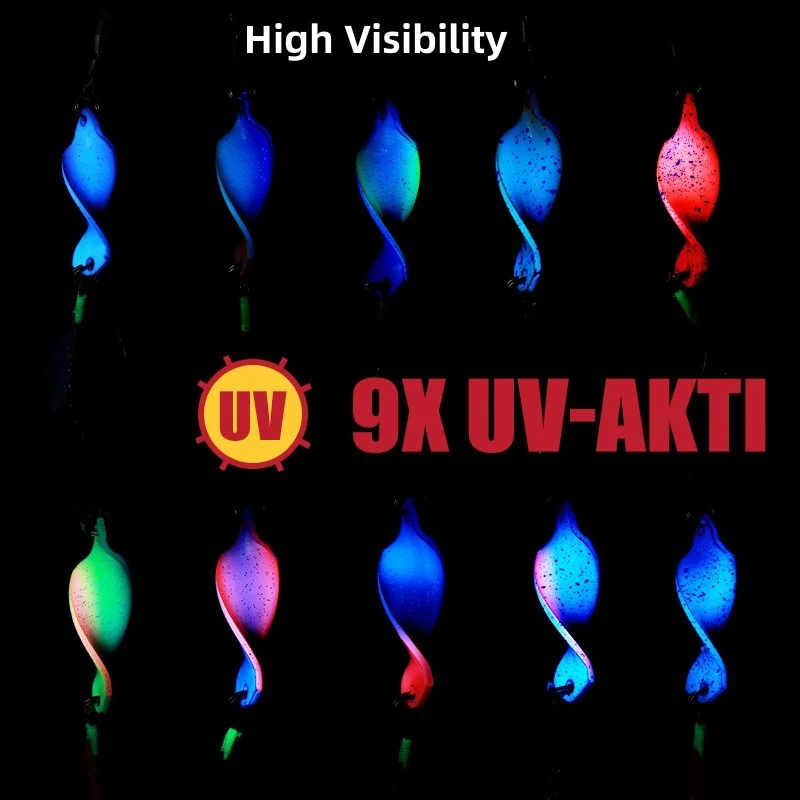 Alta visibilidad: la hoja con revestimiento UV permite que los peces vean el señuelo incluso en aguas profundas y con poca luz.