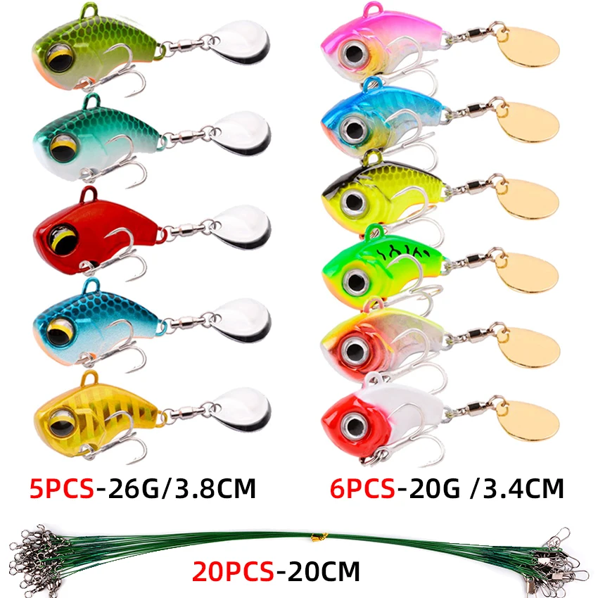 Señuelos giratorios de Metal para Pesca, cebo giratorio de 11 piezas, VIB, con vibración, cuchara giratoria, 5-26g, aparejos duros para Pesca de trucha en invierno