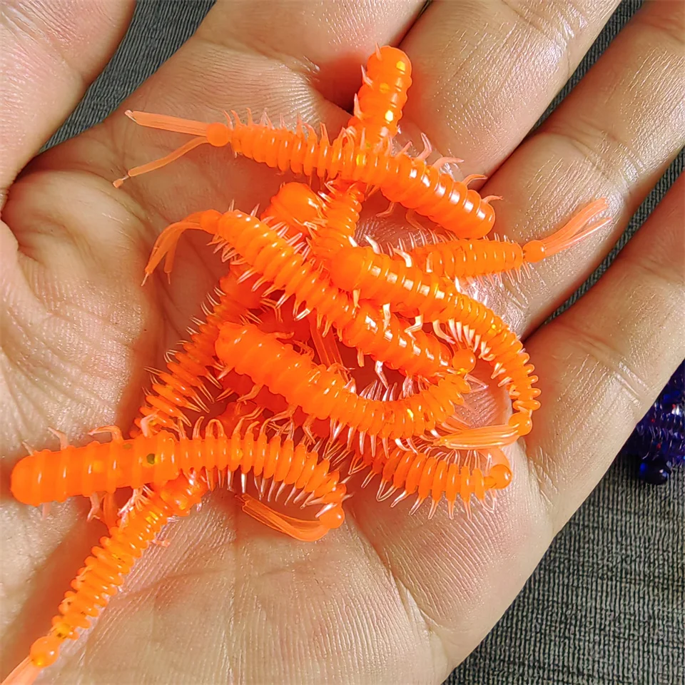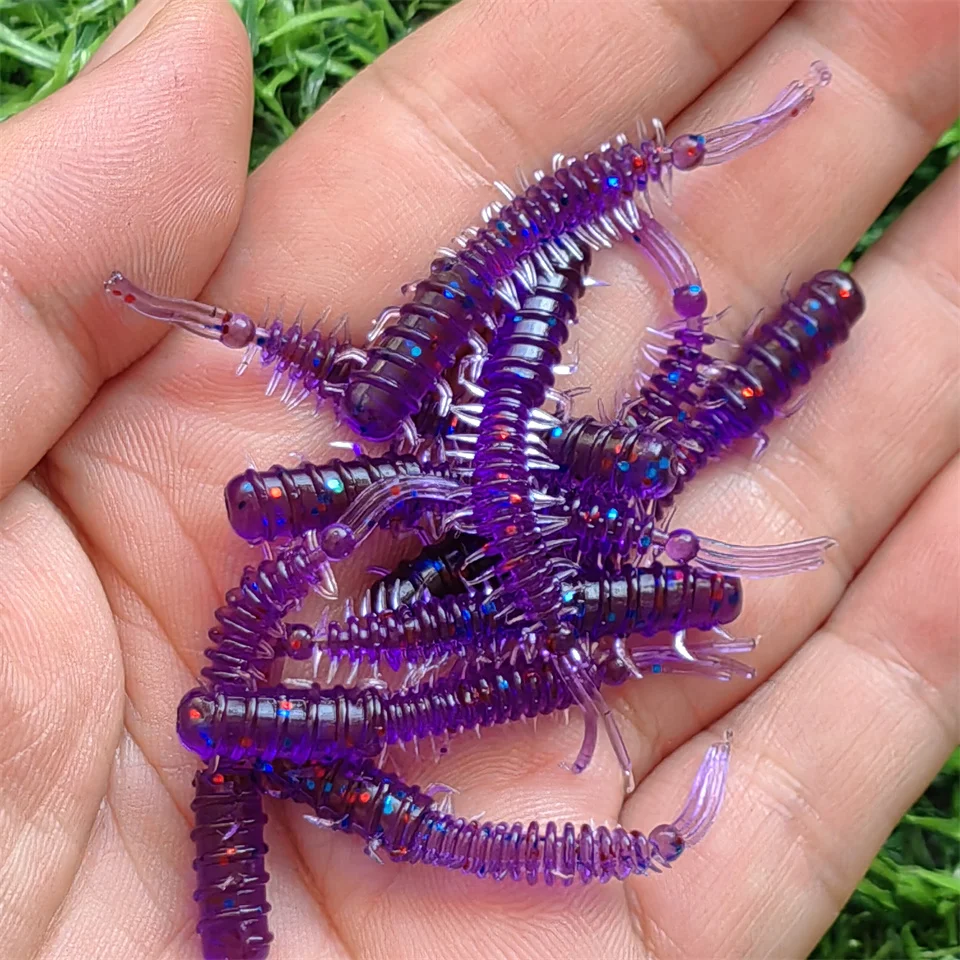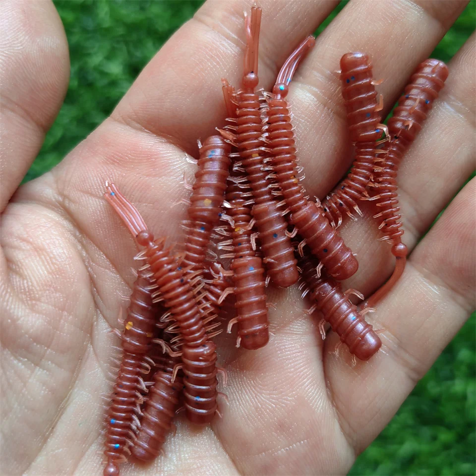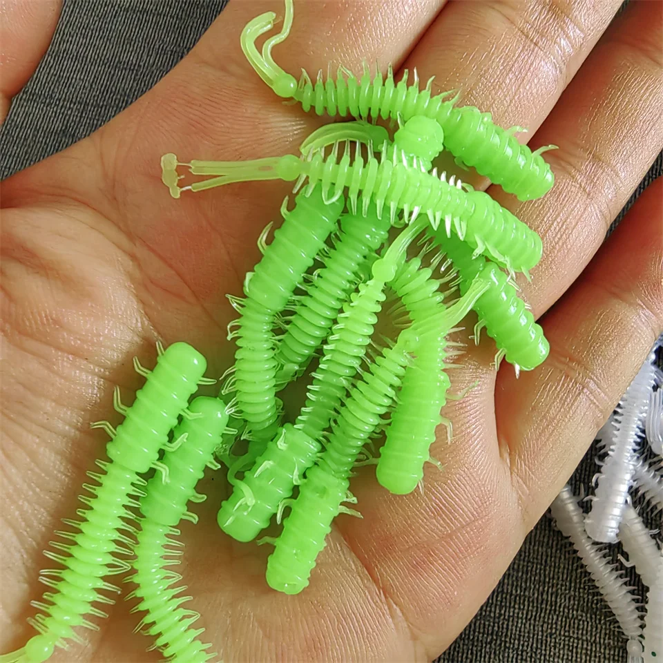 Señuelos de gusano MUKUN, 10 Uds., Mini señuelo de 45mm, 0,4g, cebo de silicona suave, larva Artificial, cebos de goma, Wobblers, señuelo de pesca de lubina