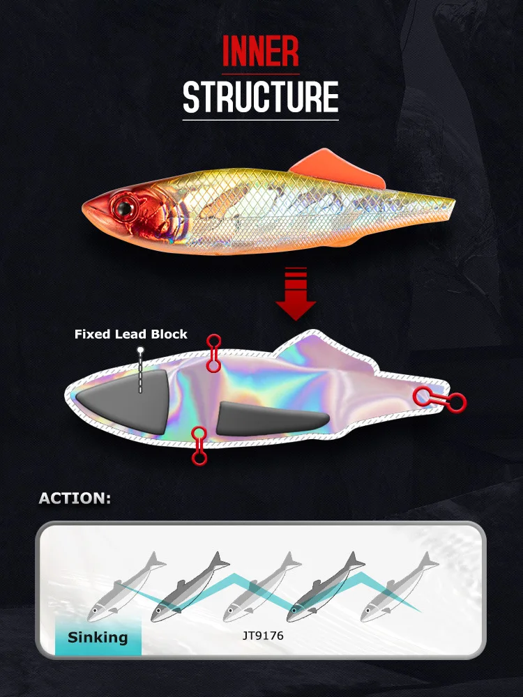 6,5 cm 14g Señuelos de hundimiento de vibración Swimbait VIB Señuelo de pesca Wobbler Balance de hielo Plantilla de pesca para Lucio Salmón Artificial kalikana