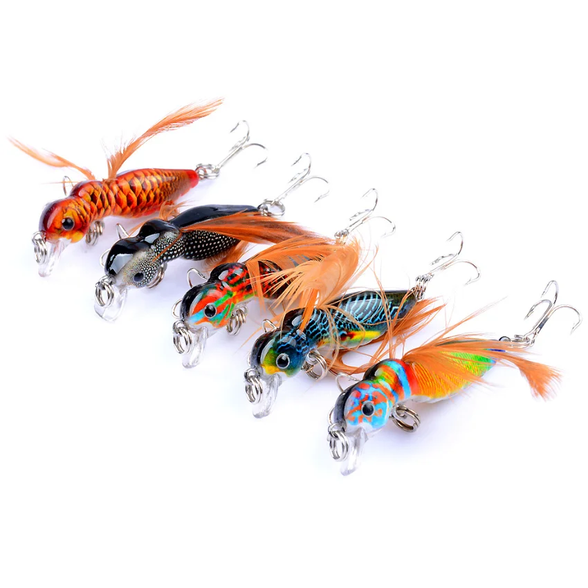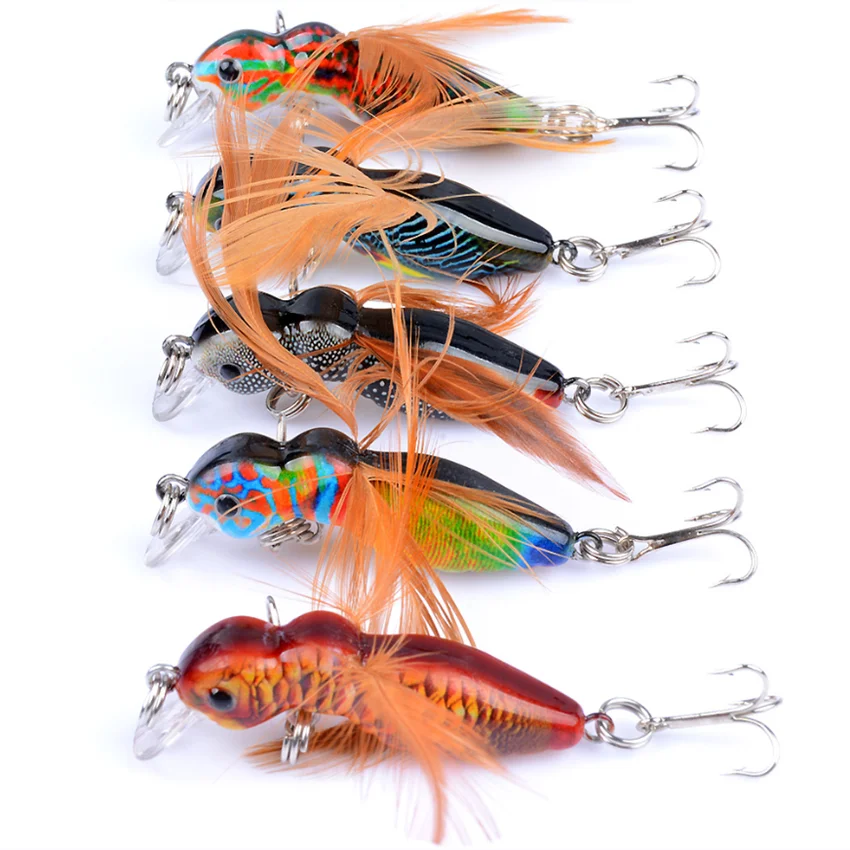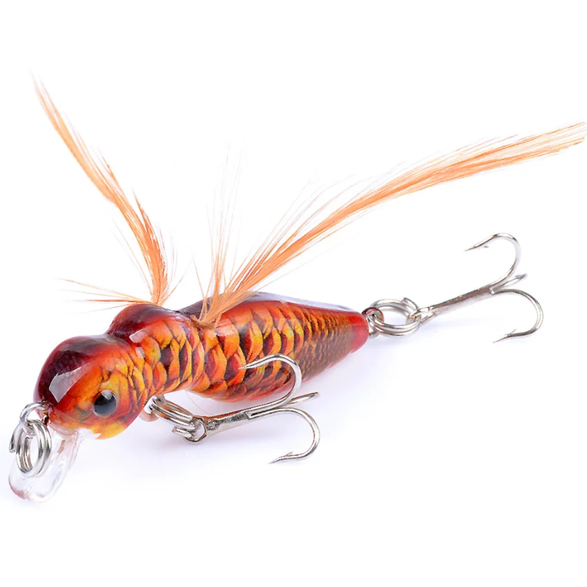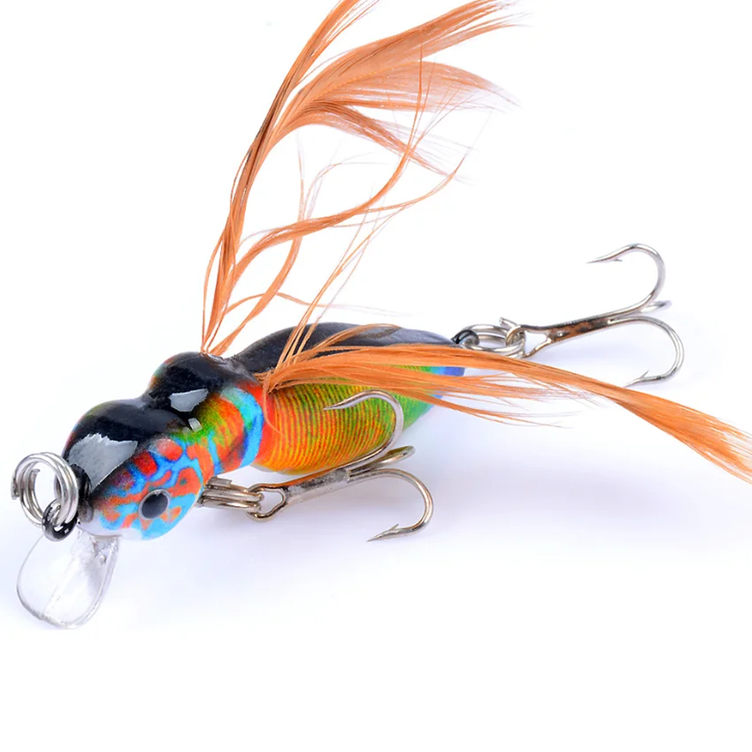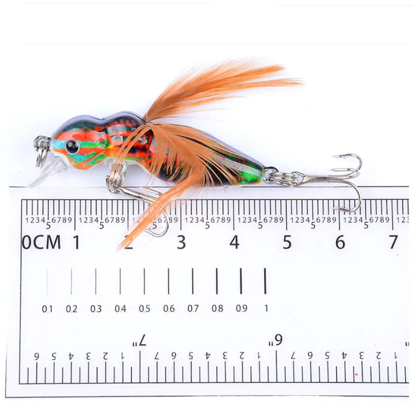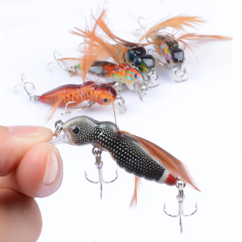 Señuelos de insectos artificiales de 4,5 CM/3,4G, Mini Pesca, señuelo de hormiga pintado, cebo de plumas con cuentas 3D, señuelo de Pesca con anzuelos triples