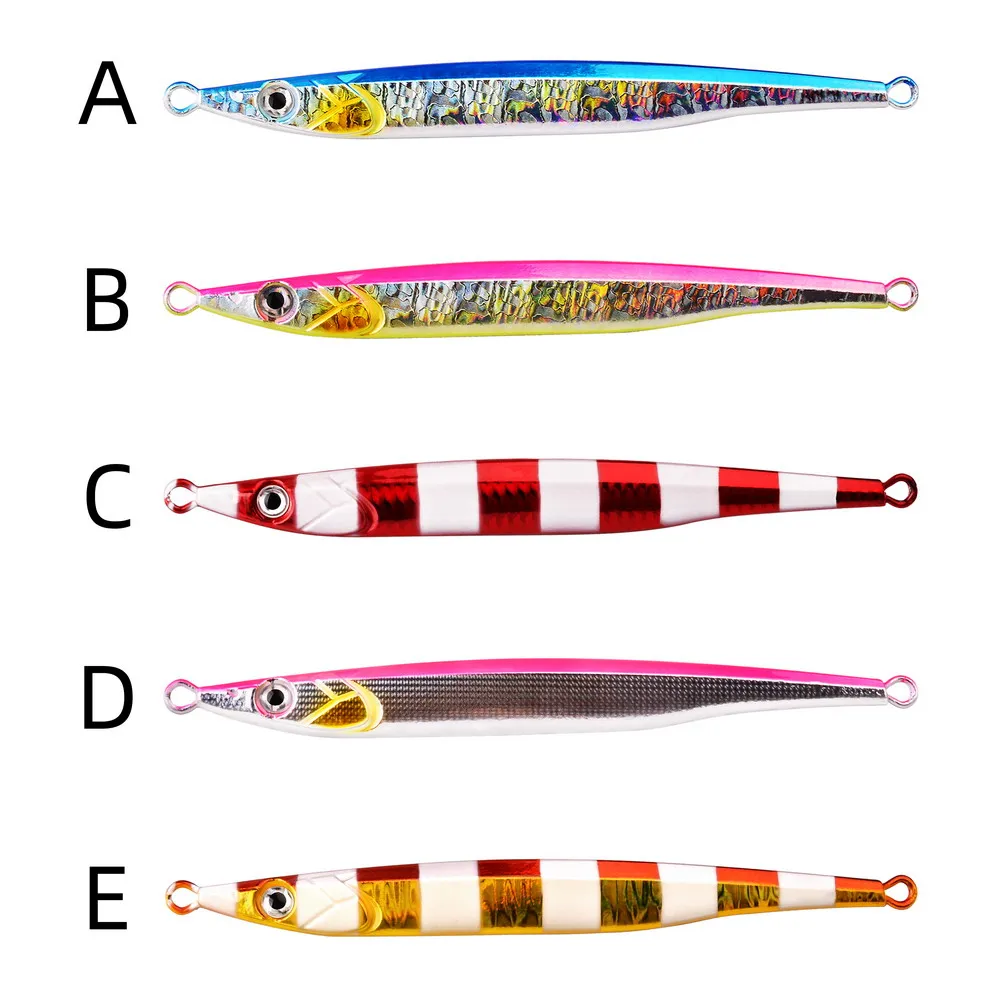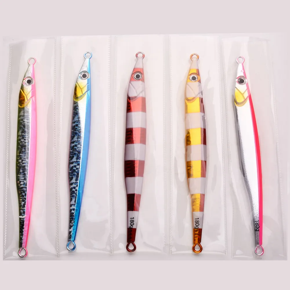 Señuelos Jgging de pesca en barco, 5 uds., largo, lento, delgado, hundimiento, plantillas planas de Metal, cebos para pesca en agua salada, 60g-180g