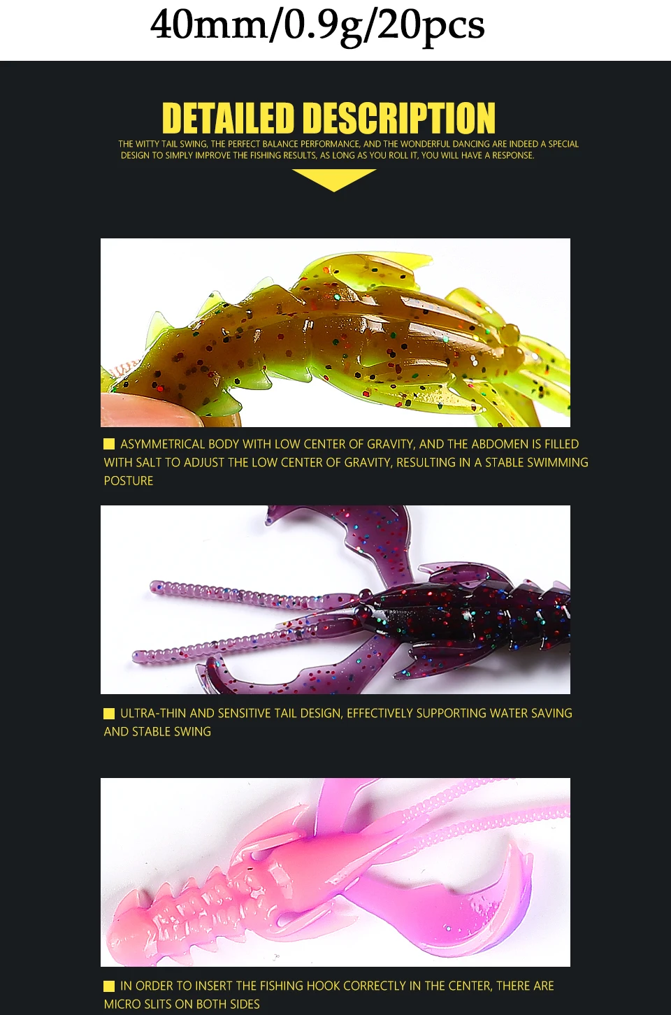 Señuelos locos supercontinentes, 65mm/10 Uds., 40mm/20 piezas, señuelos de pesca blandos, camarones, langosta, señuelos de pesca de plástico blando