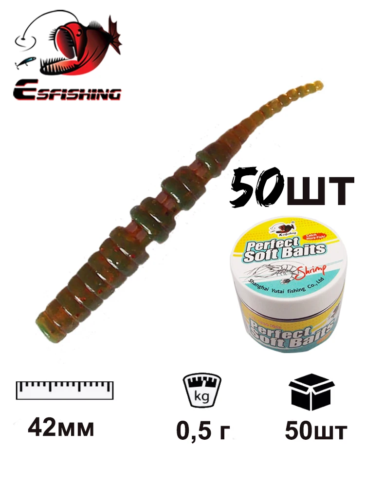 Señuelos de Lucio 50 Uds 42mm Polaris gusano cebo de silicona agua salada lubina pesca de trucha