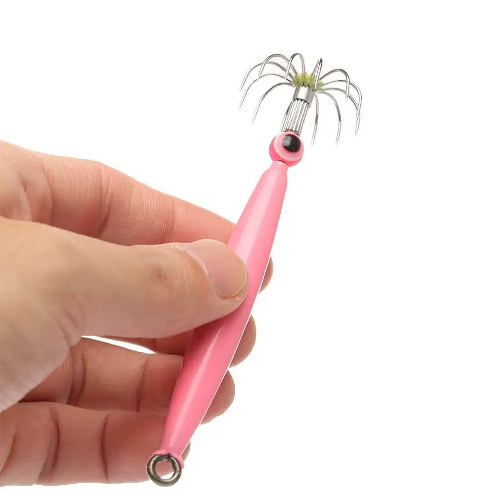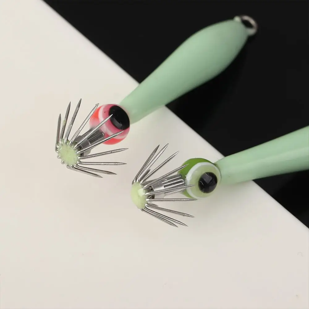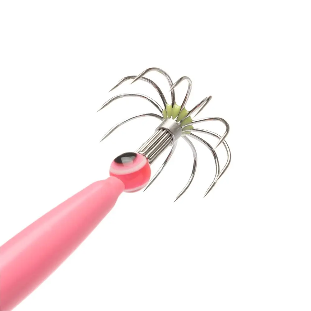 -Este anzuelo de calamar utiliza un diseño de 12 ganchos, en forma de paraguas.