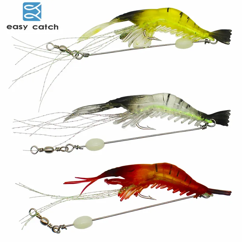 Señuelos de pesca de camarones luminosos suaves de fácil captura 3 uds. Cebo Artificial de camarón intermitente de Color claro mezclado con cuenta luminosa