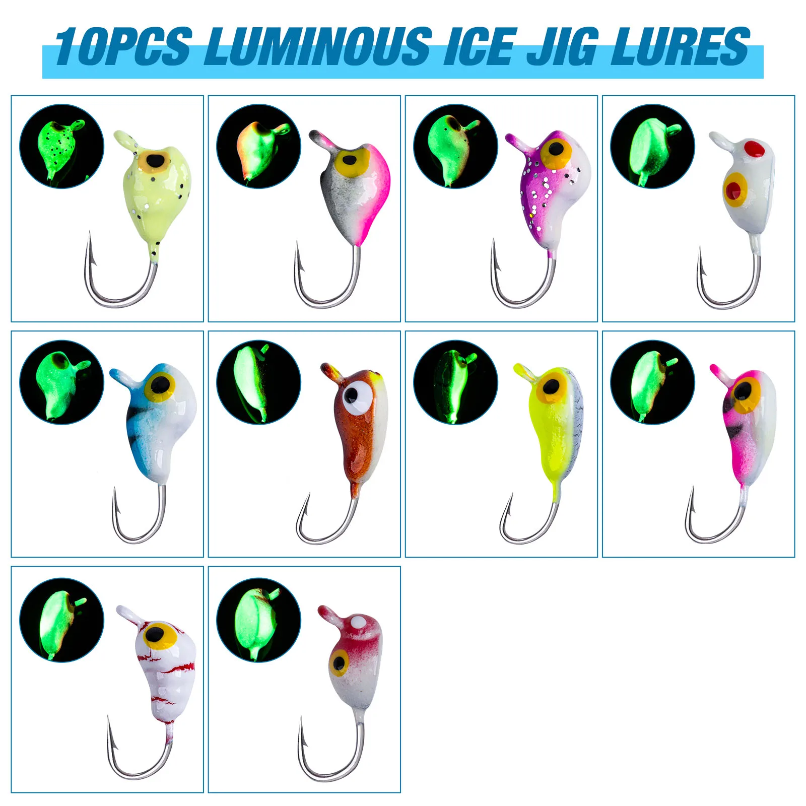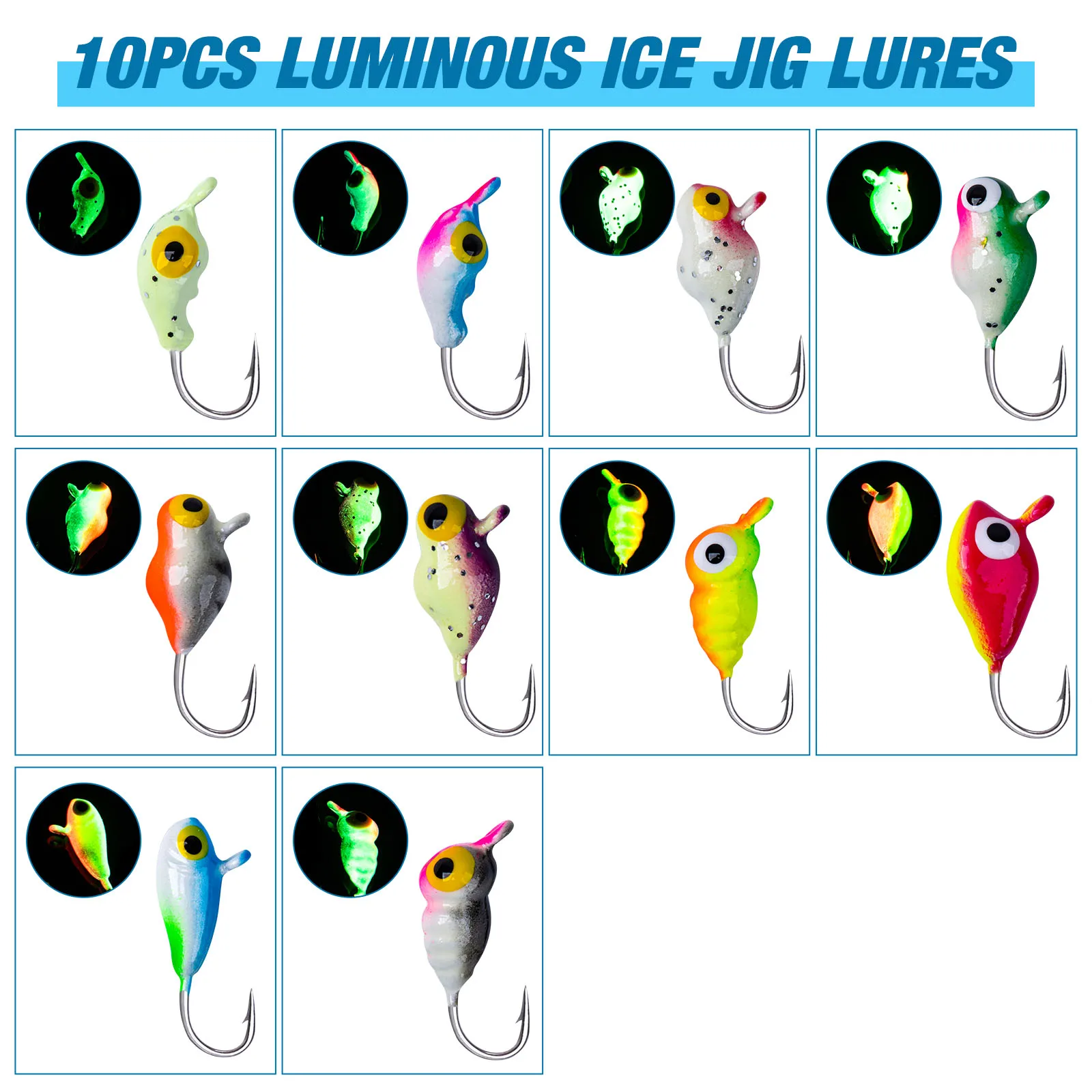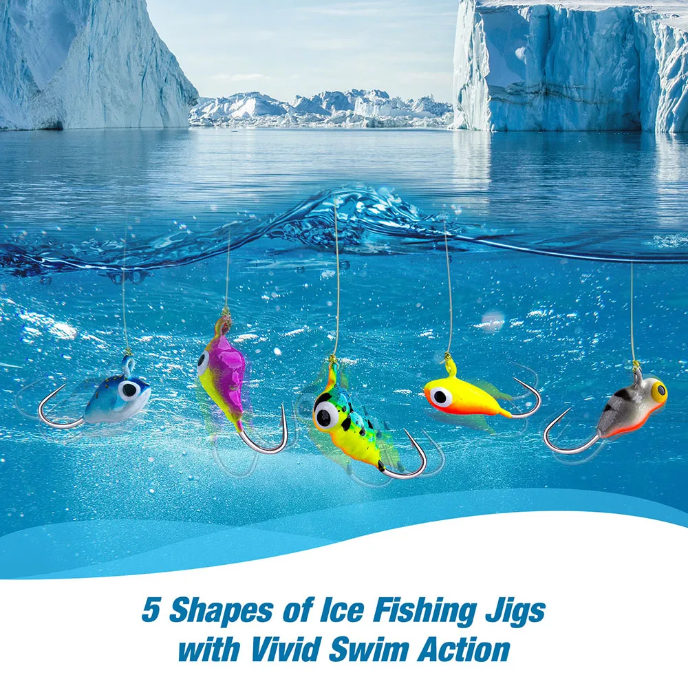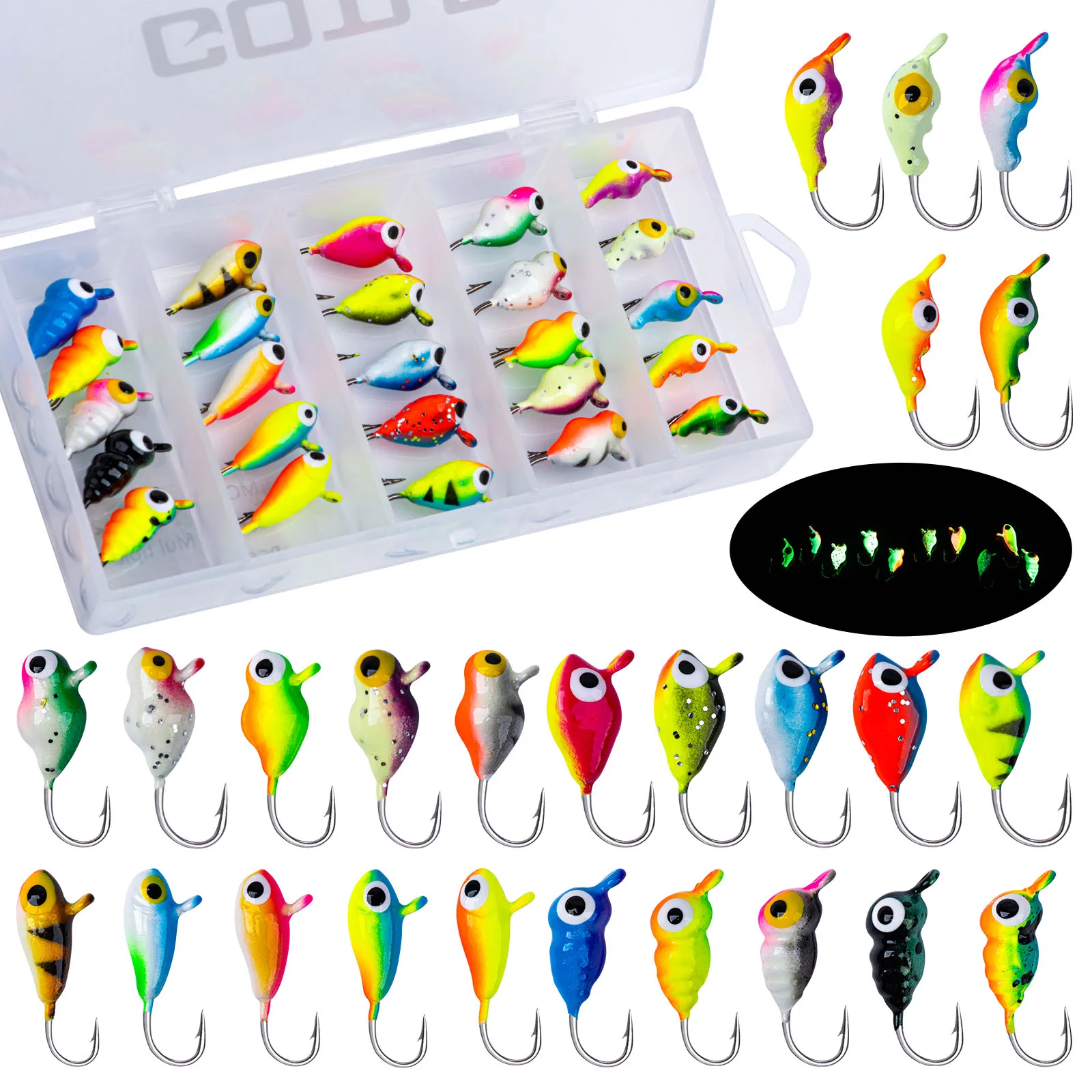 Señuelos de Pesca Luminosos para Invierno, Señuelos de Pesca en Hielo, Jigs de Crappie de Lubina, 25 Unidades por Caja