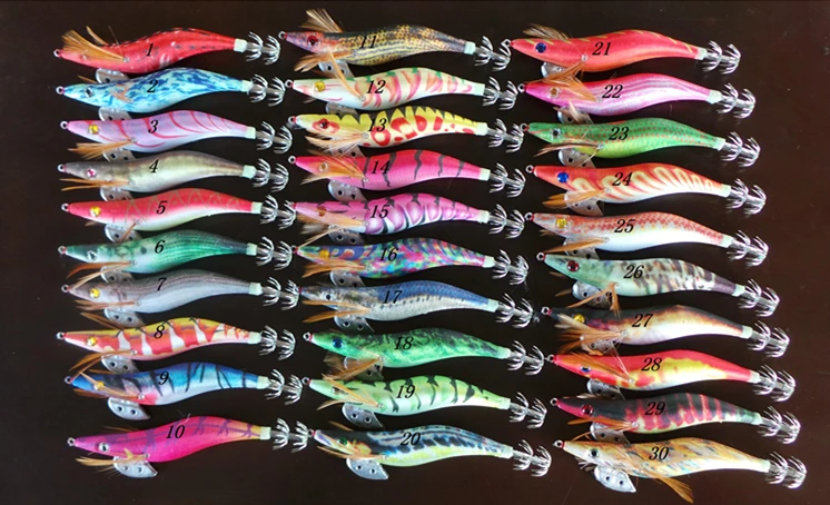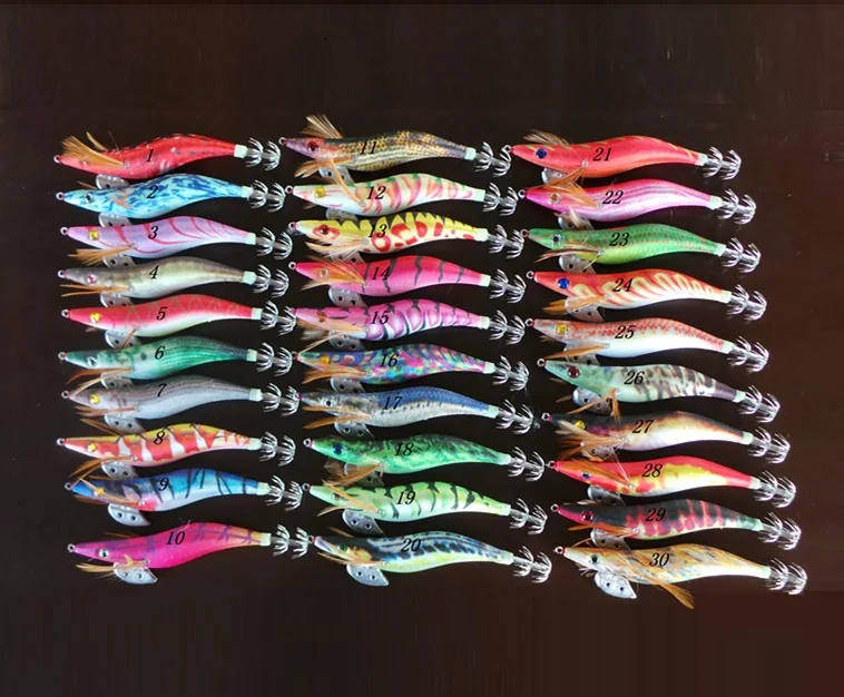 Señuelos luminosos de plantilla de calamar, cebo de camarón de madera 2,5 #3,5 #11G 21G, aparejos de Pesca de carpa, 15 Uds.