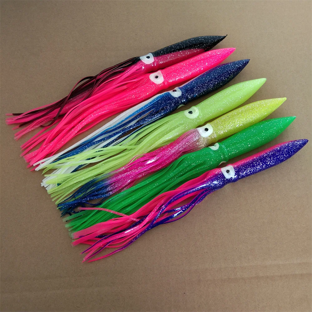 Señuelos luminosos de silicona para pesca en el mar, faldas de pulpo suaves de 7 piezas y 30cm, herramienta de ojo brillante 3D para pesca de calamar