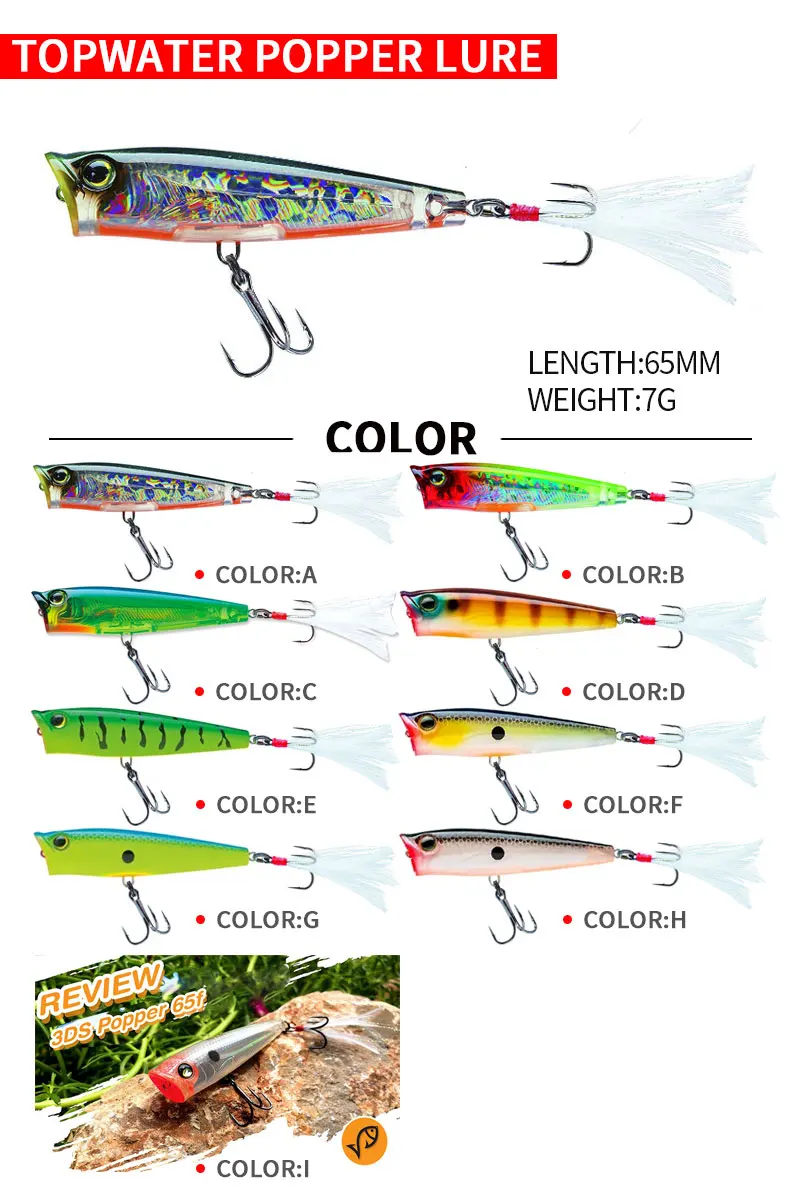 Señuelos de mar Popper Topwater, 7g, 65mm, lápiz de tiro largo, cebo Artificial, Wobblers de Pesca para Lucio, perca, Swimbait, accesorios de Pesca