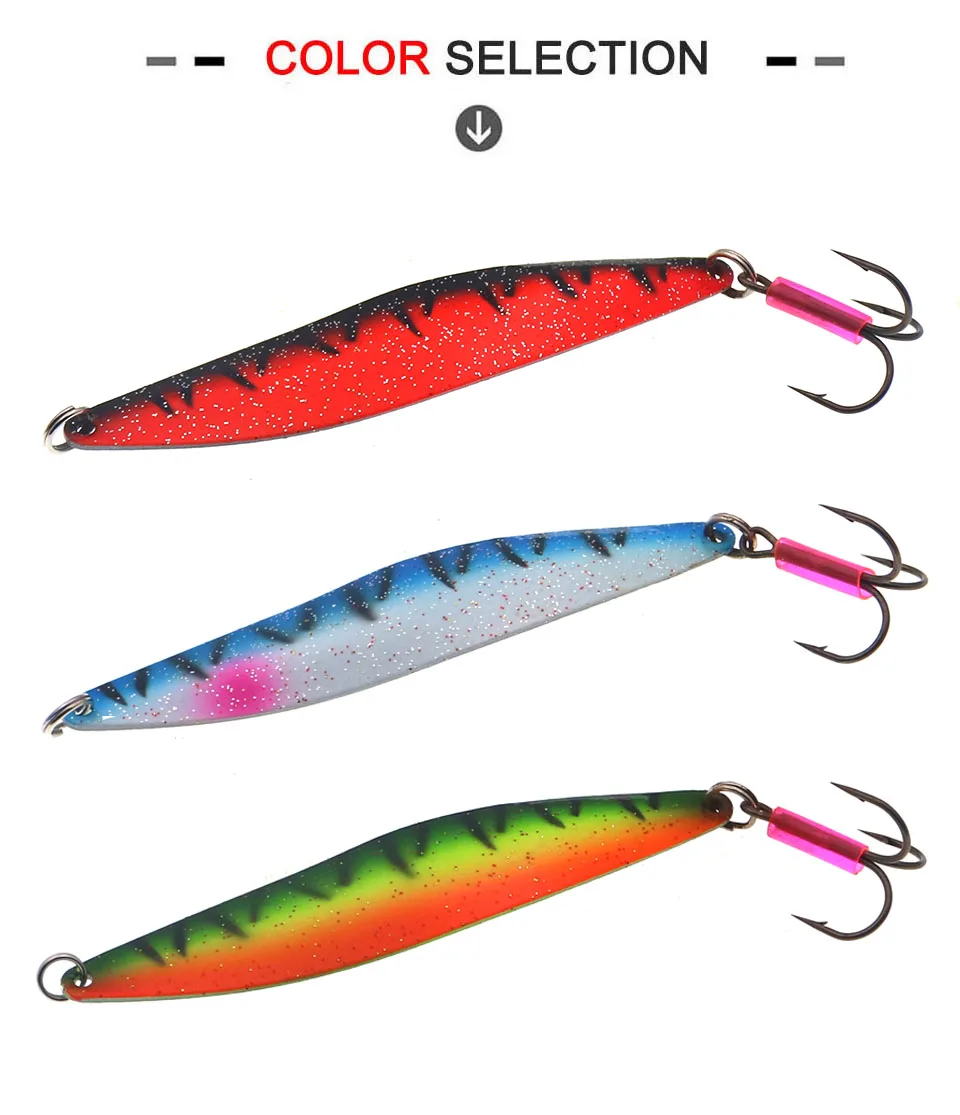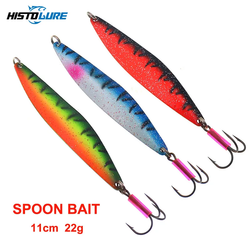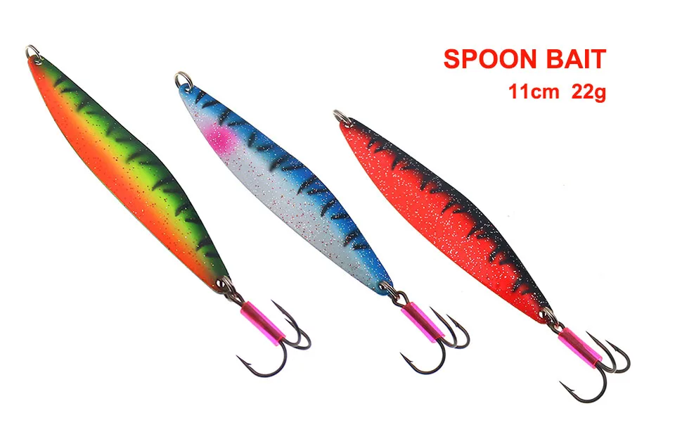 Señuelos de Metal con cuchara giratoria, de 11cm y 22g anzuelo triple, cebo Artificial para lubina, trucha, aparejos de Pesca, 1 unidad