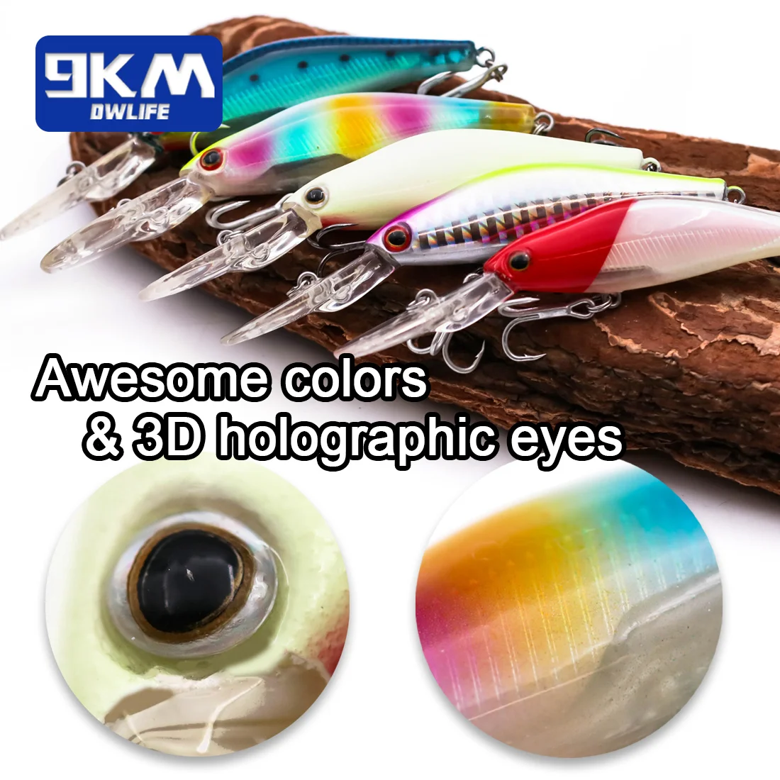 Hecho por ABS: los señuelos de pececillos de pesca duros están equipados con dos anzuelos triples afilados, anillos divididos de alta resistencia, ojos y patrones 3D realistas que los hacen más realistas y agresivos.