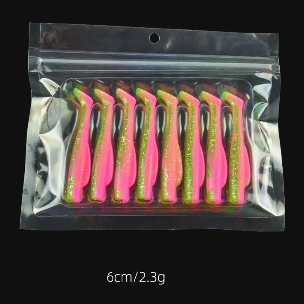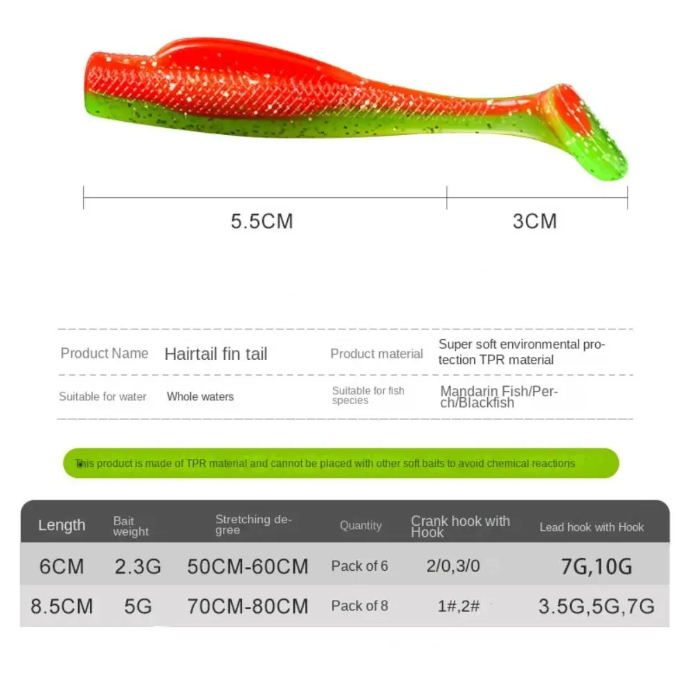 Nombre del producto: T-Tail Swim Bait Material :TPR Estilo: 20 opciones Color: Multicolor Tamaño único: 6cm(2.36in)/8,5 cm(3.35in) Peso individual: 2,3g/5g Lista de productos: 1 paquete de cebo de Natación (tipo de 6cm: Tipo de 8 cm/8,5 cm: Tipo de 6cm: 6 piezas) Adecuado para: Lua cebo, pesca en agua dulce, pesca en el mar, la pesca en barco puede ser, lubina, bucktails, pez negro, bagre, Pescado mandarín, pescado canela, pez Tigre, etc. Nota: debido a las diferentes configuraciones de iluminación y pantalla, el color del artículo puede ser ligeramente diferente al de la imagen. Debido a las diferentes mediciones manuales, permita una diferencia de tamaño de 3-5mm (0,12-0,20 pulgadas).