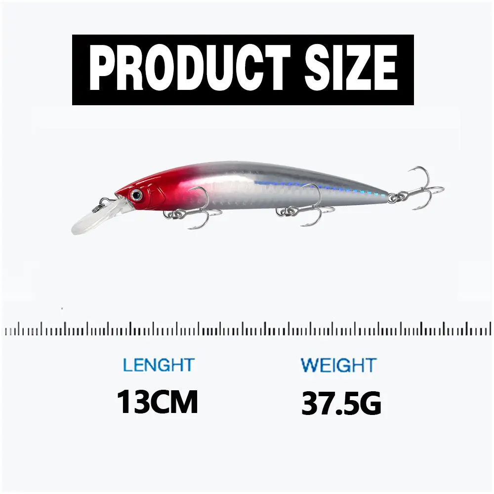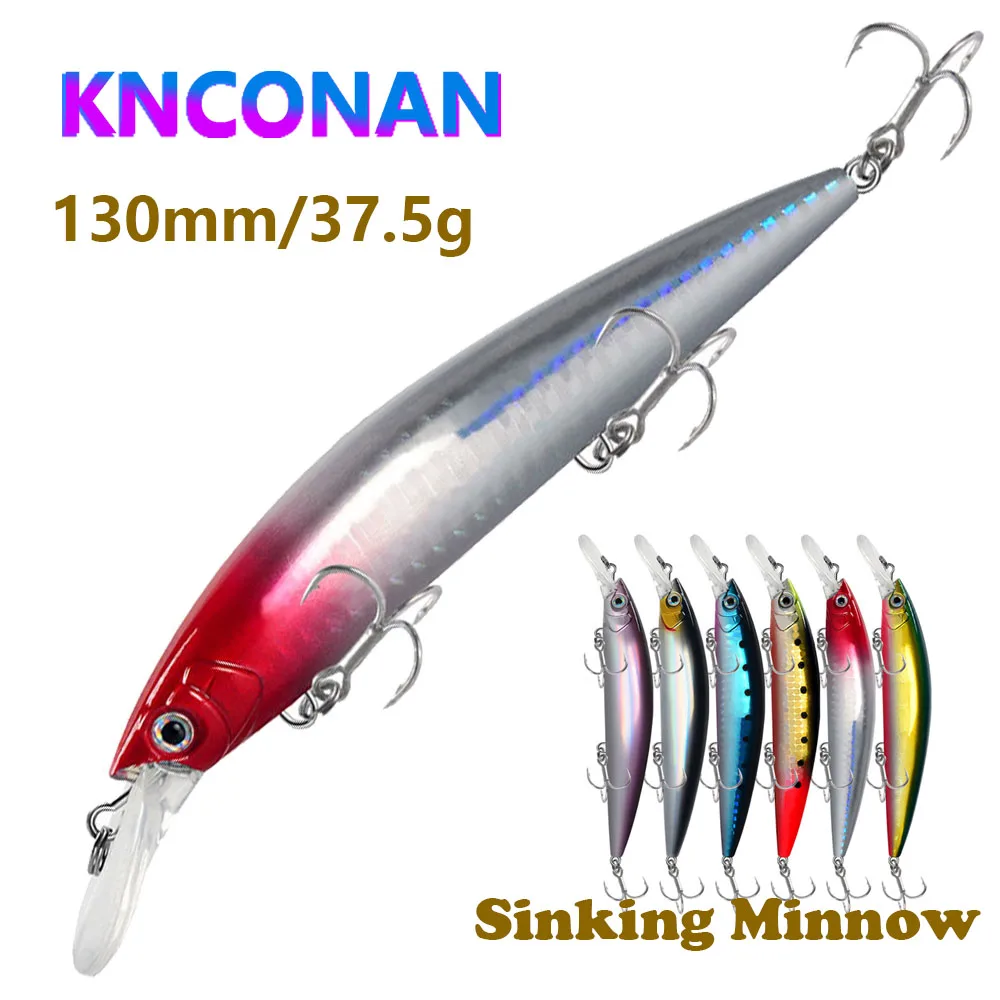 Señuelos de pececillo de hundimiento pesado, 130mm, 37,5g, cebos duros artificiales de fundición larga, lubina, trucha, Swimbait, Pesca Wobbler