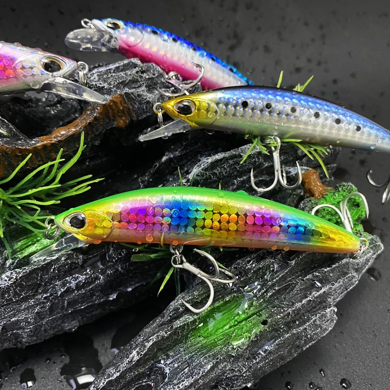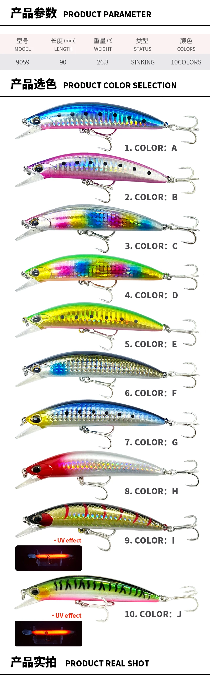 Señuelos de pececillo de hundimiento pesado, 26g, 90mm, láser UV, cebos duros artificiales, Trolling, Wobbler, agua salada, lubina, equipo Jerkbait