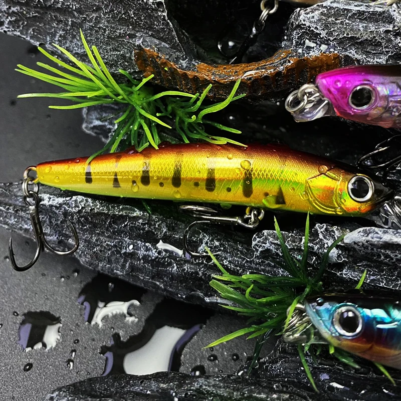 Señuelos de pececillo que se hunden, 80mm, 14g, Stickbait con cuentas magnéticas para lubina, cebo Artificial, Wobblers, Swimbait, accesorios de Pesca