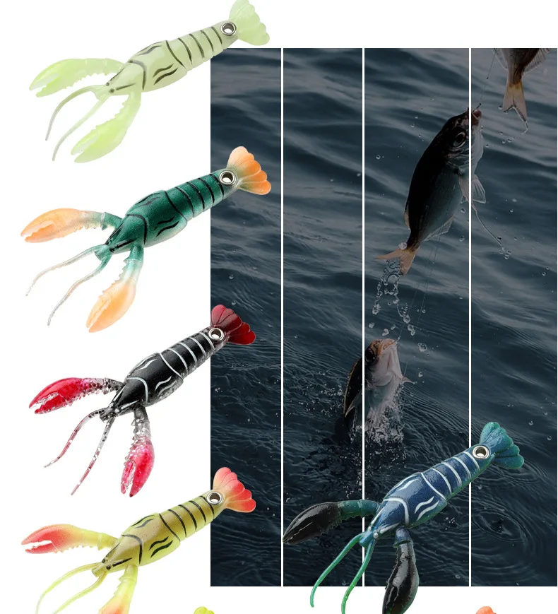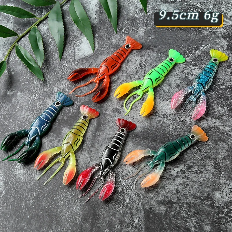 Señuelos de peces blandos, cebos artificiales para camarones, aparejos de pesca, langosta, cangrejo, gusano, Anguila, Needfish, Swimbaits, cabeza de anzuelo, herramientas de pesca de 95mm