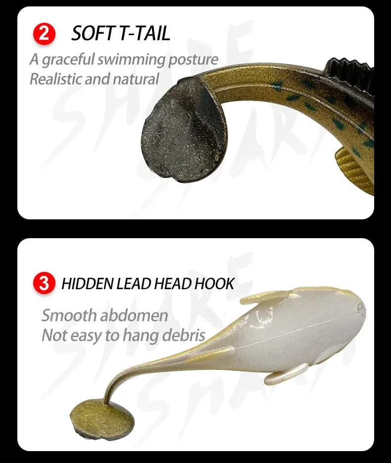 Señuelos de cola en T de pez saltador, parte inferior anticolgante, plantilla de cebo suave hundido, pez de plomo, gusano suave de Color, señuelo de pez saltador suave