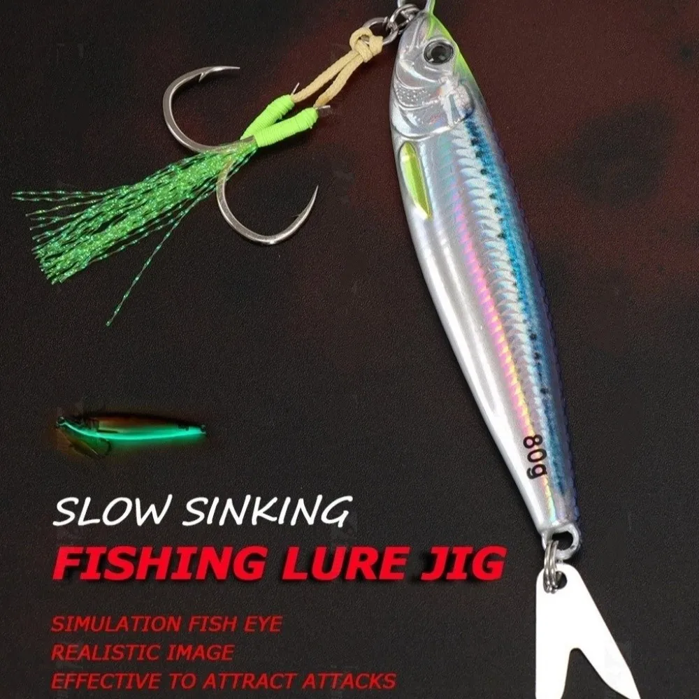 Los jigs se utilizan ampliamente para diversos peces, como atún, rey, pargo, diente de perro, mero, salmón de lubina.