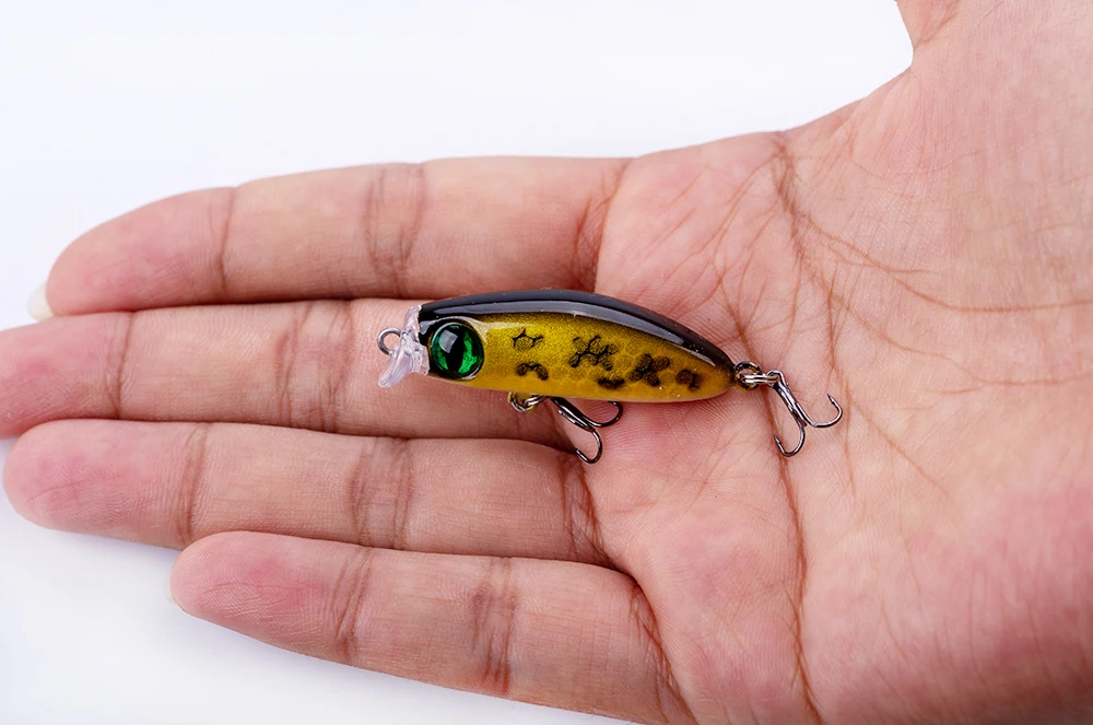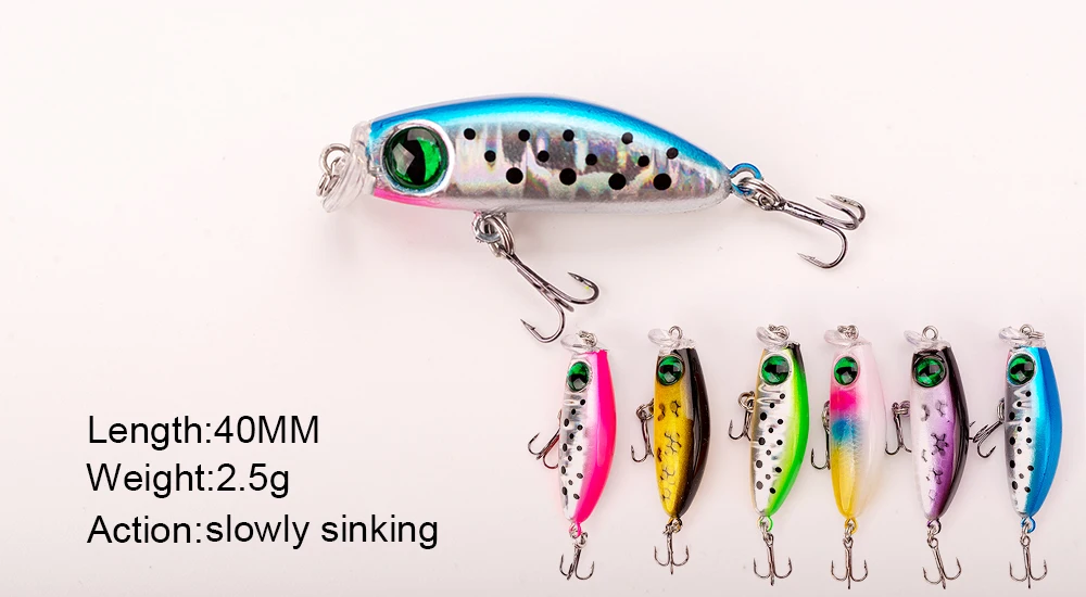 Señuelos pequeños de diseño japonés, 1 piezas, 2,5g, 35mm, de hundimiento lento Minnow, Mini cebo duro para perca, trucha