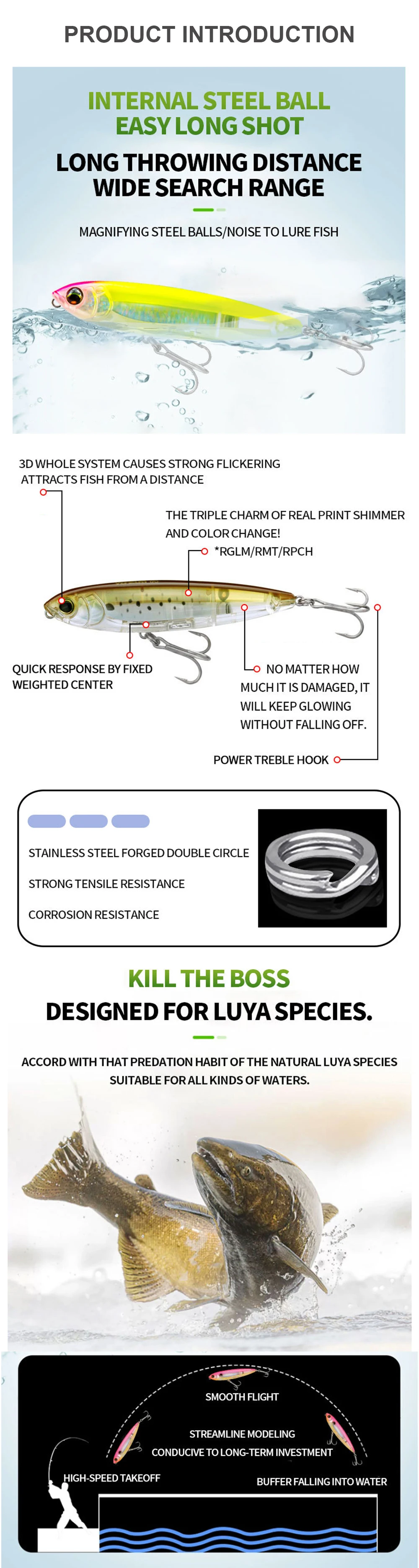 2.El cebo está diseñado para tener el mejor equilibrio para que pueda nadar a la velocidad de recuperación más lenta posible.