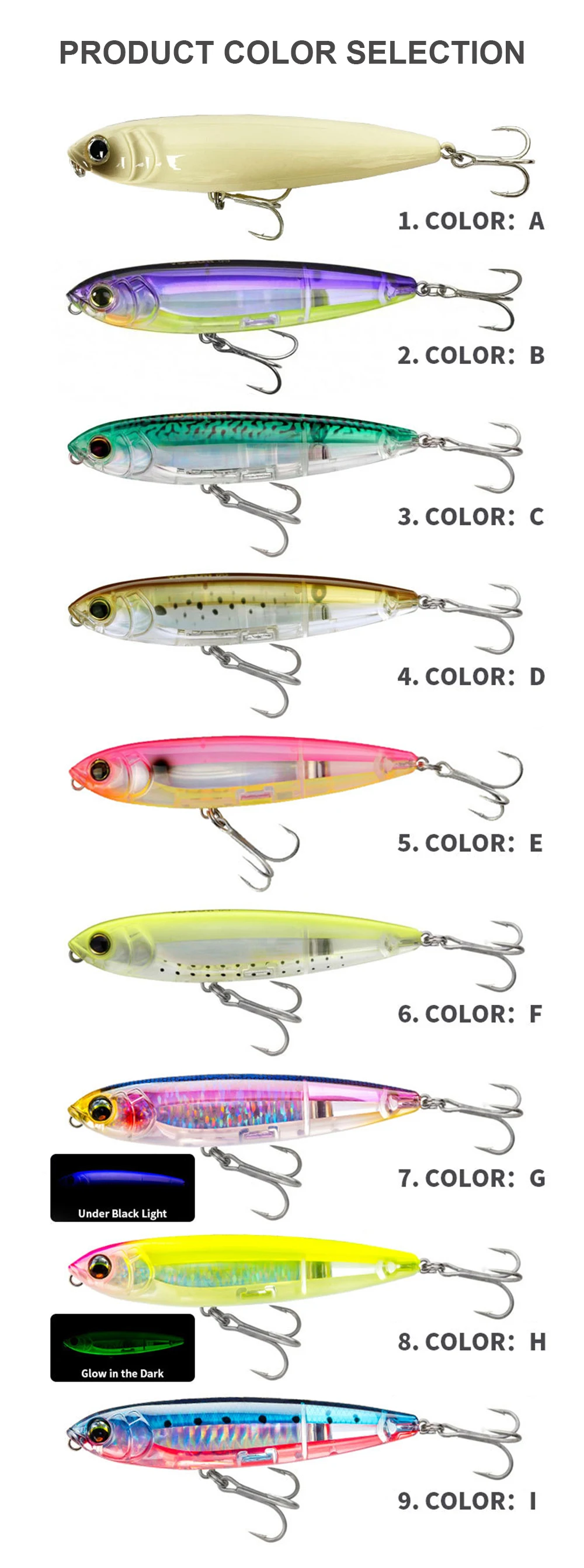 3. Los cebos tienen una pintura realista y ojos 3D vívidos, hacen que el cebo parezca peces reales nadando en el agua durante la pesca.