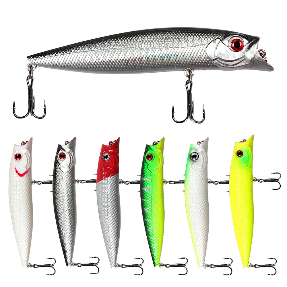 1. Strong high carbon steel treble hooks, 3D lifelike eyes, top water lures.
