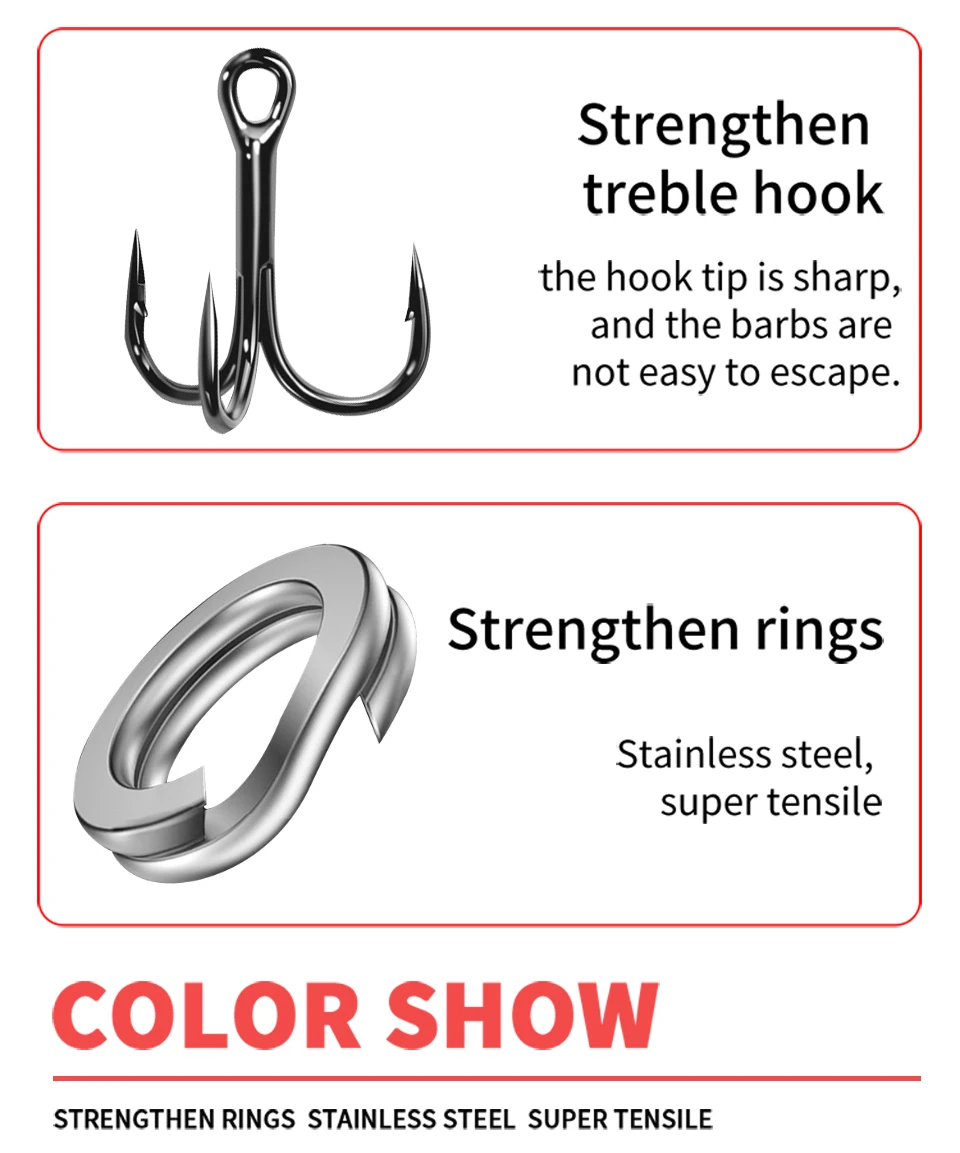 1,3 ganchos triples fuertes, potencia más fuerte, duradero, agua de mar de agua dulce universal.