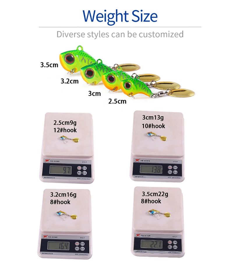 Señuelos de pesca 2023 VIB con cuchara percha cebo Artificial duro 9/13/16/22g 2,5/3/3.2/3.5cm vibración hundido Pin de aparejos de pesca