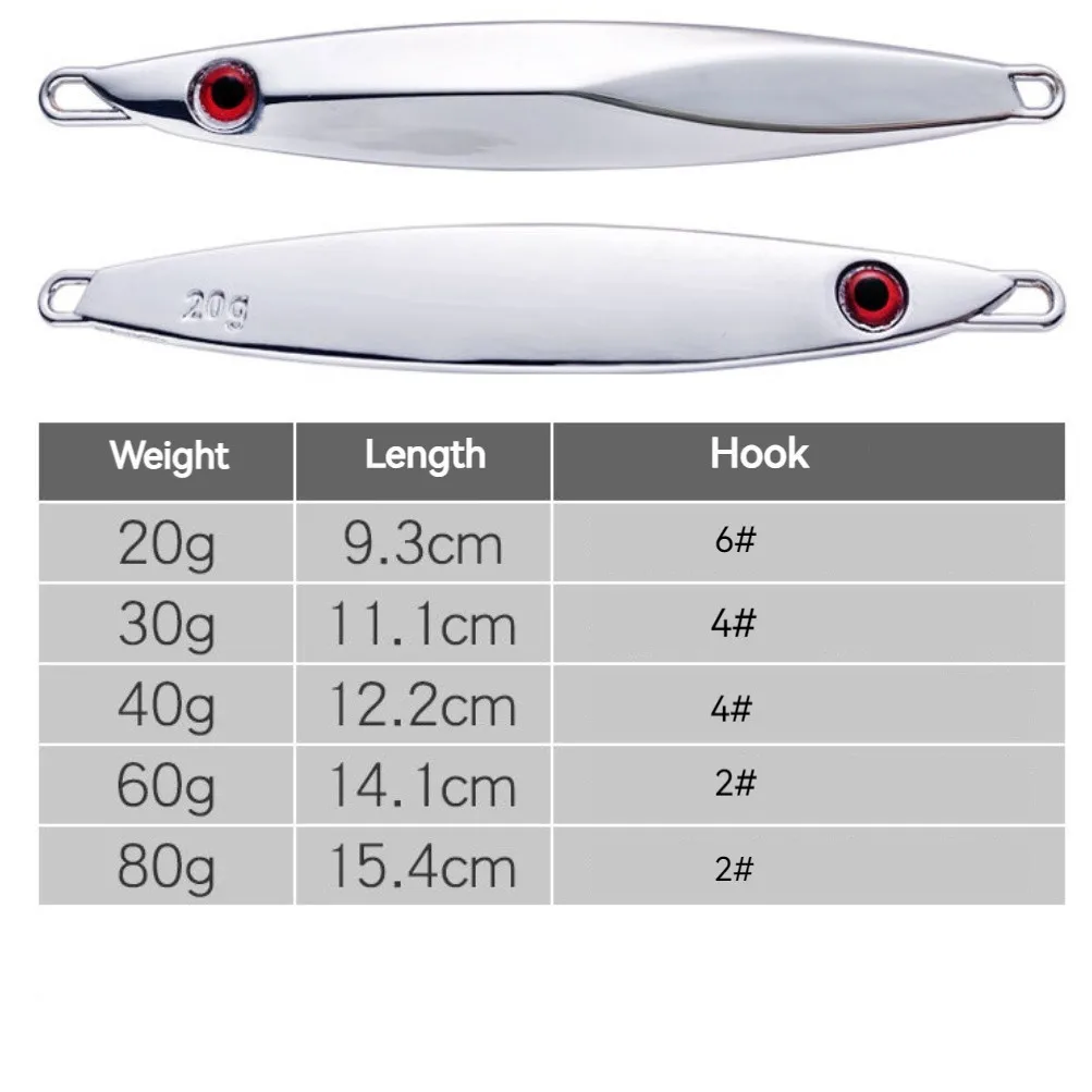 Señuelos de pesca de 20g/30g/40g/60g/80g, plantilla de Metal para lubina, cebo de pesca de tiro largo, plantilla de cebo de cuchara dura, señuelo giratorio Artificial