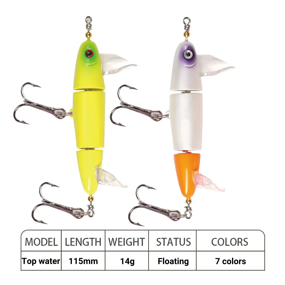 Señuelo de pesca minnow cebo profesional cebo de natación cebo articulado anzuelo negro anzuelo blanco wobblers cebo duro de múltiples secciones cebo artificial crankbait perca aparejos de pesca de carpa superficie tractor tipo hélice cebo lápiz doble fundido spinner de agua giratoria se combina para ofrecer una experiencia de pesca excepcional, diseñado tanto para aficionados y pescadores profesionales que buscan calidad y confiabilidad.