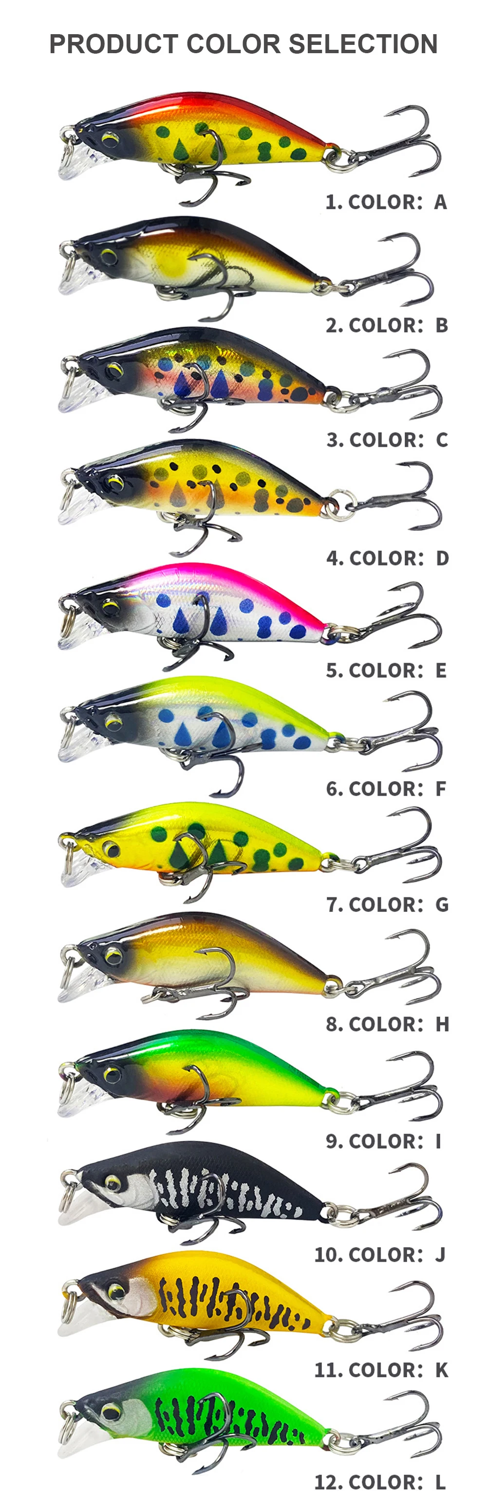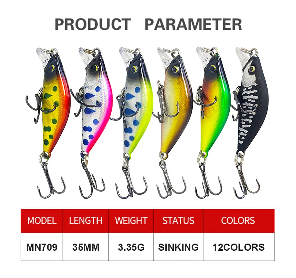 3,5 cm 3,35G Señuelos de Pesca Hundimiento Micro Minnow Wobbler Mini Cebo duro artificial Jerkbait Accesorios de pesca Trucha Bass MN709