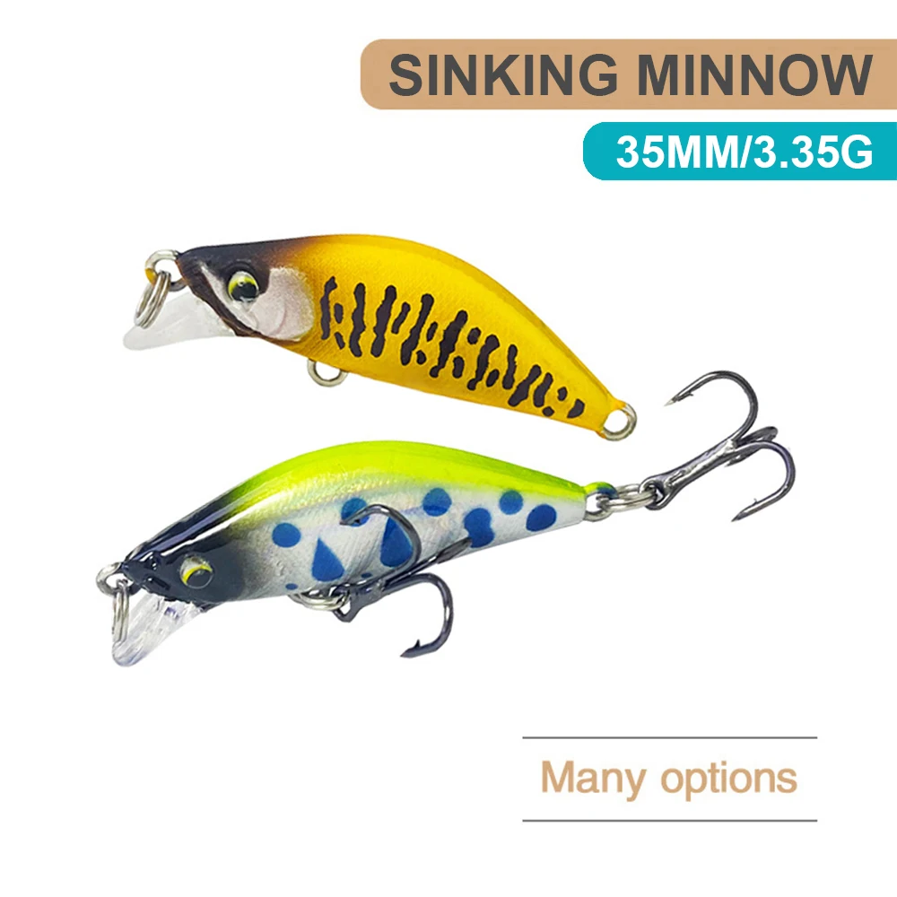 3,5 cm 3,35G Señuelos de Pesca Hundimiento Micro Minnow Wobbler Mini Cebo duro artificial Jerkbait Accesorios de pesca Trucha Bass MN709