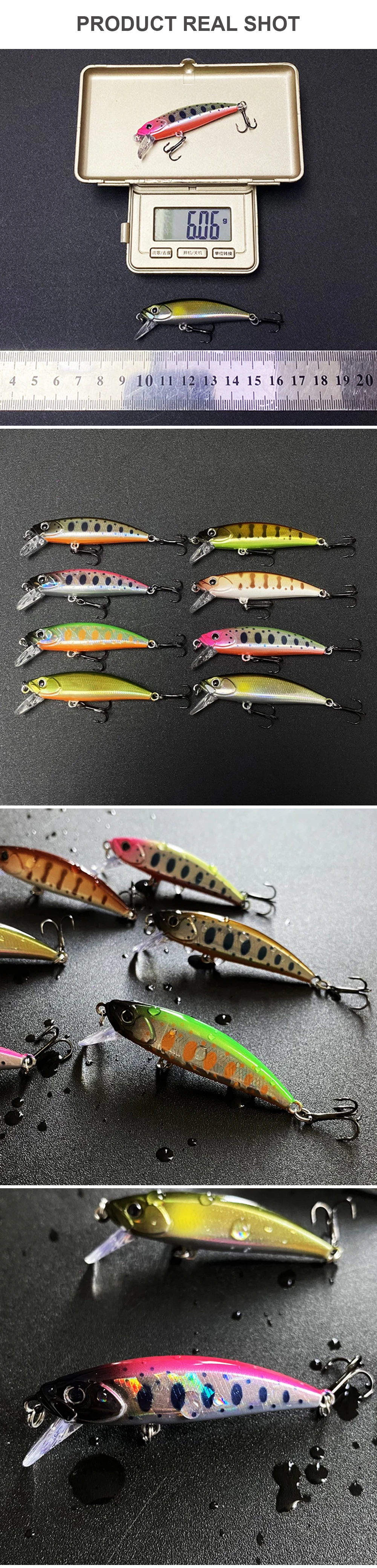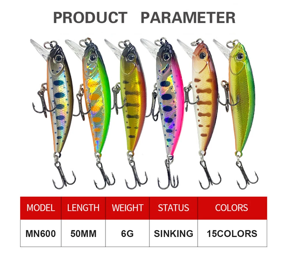 Señuelos de pesca de 5cm y 6g, Micro Minnow Wobbler, cebo duro Artificial, Jerkbait, accesorios de pesca, Mini flujo, cebo para lubina MN600