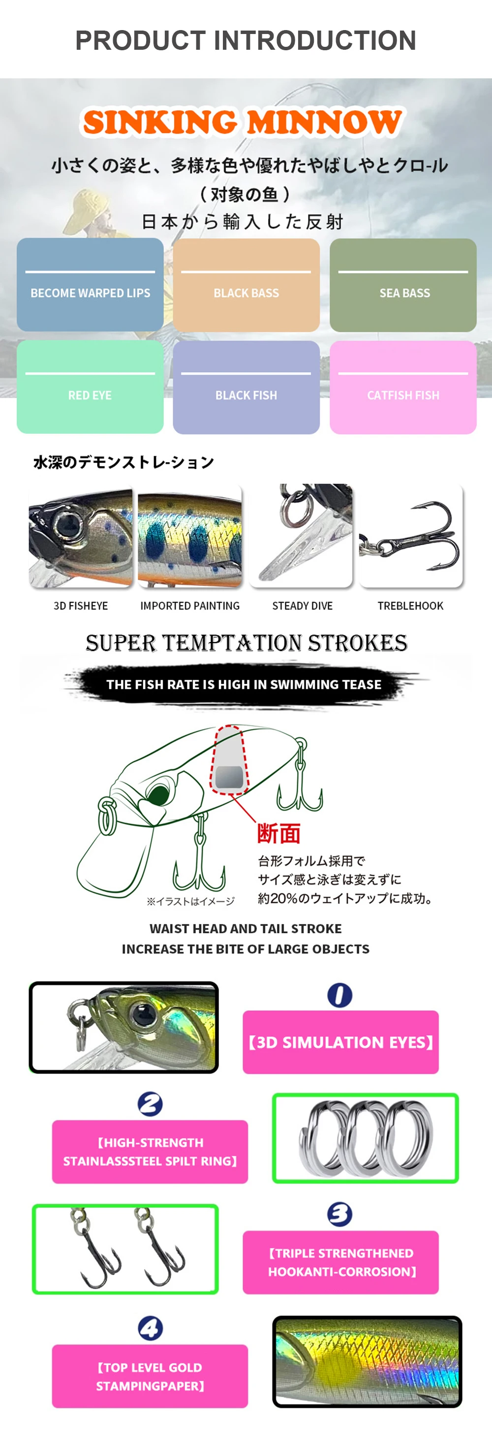 3. Los cebos tienen una pintura realista y ojos 3D vívidos, hacen que el cebo parezca peces reales nadando en el agua durante la pesca.