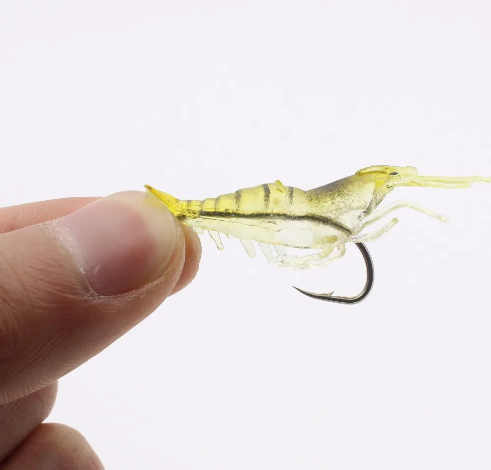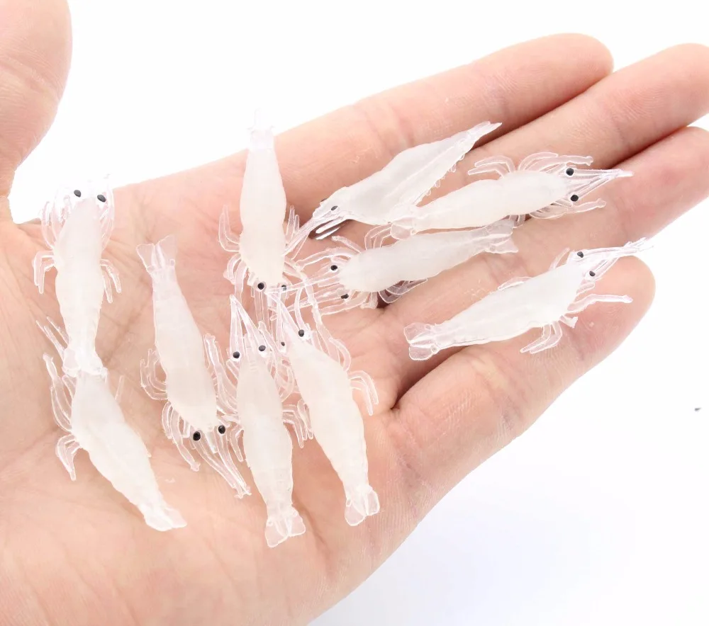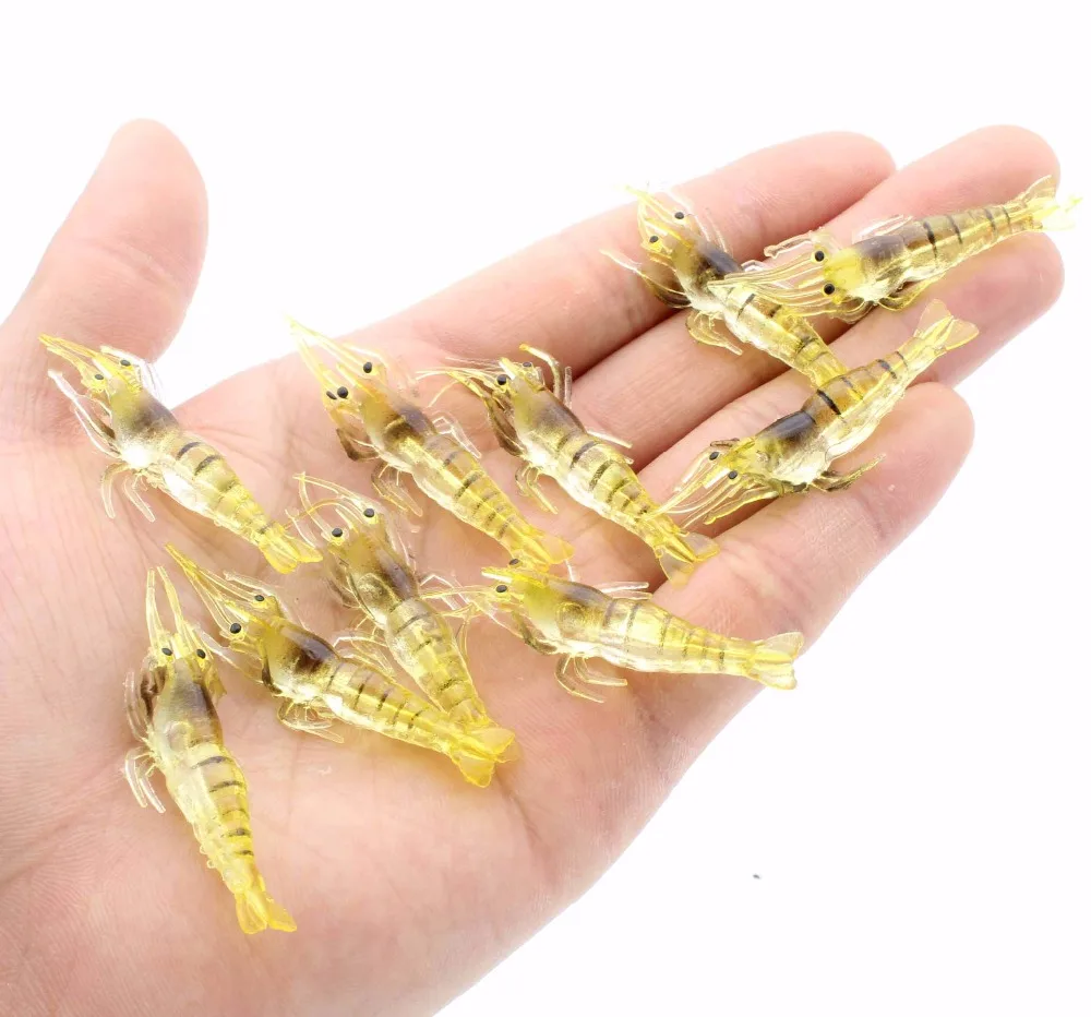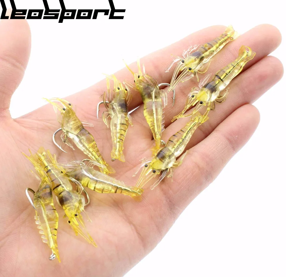 Gran oferta, 10 unids/lote, simulación de camarones, señuelo de gambas suaves, aparejos de anzuelo, cebo, Señuelos de Pesca